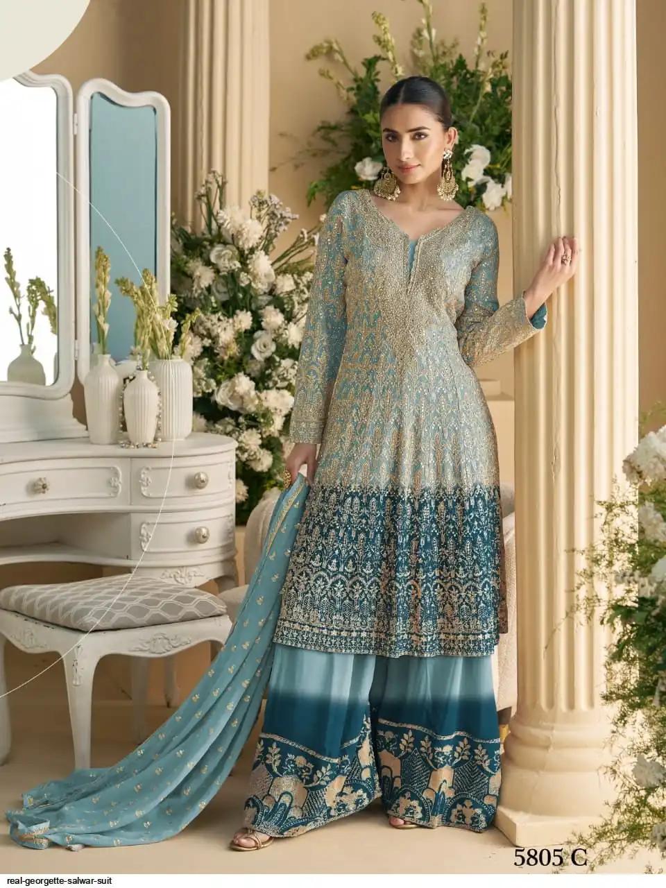 TOP :- Heavy Real Gerogette With Emb.. siquance work With Servoski Daimond