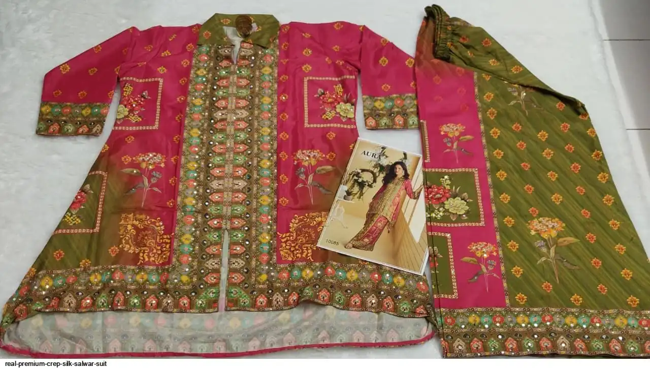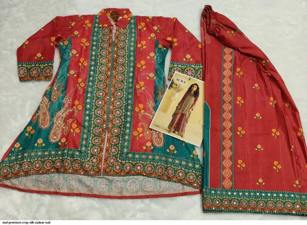 FABRIC - REAL PREMIUM CREP SILK ( DIGITAL CREP SILK EMBLISSIED MIRROR WORK CORD SETS )