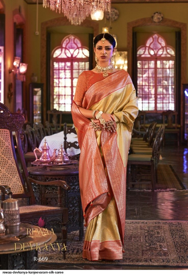 FABRIC - Kanjeevaram Silk Blend Ethnic Motif Embellished Woven Design Designer Saree