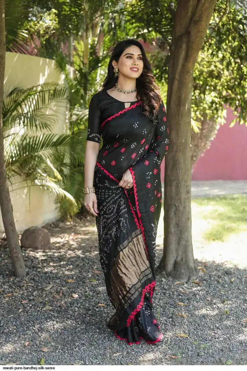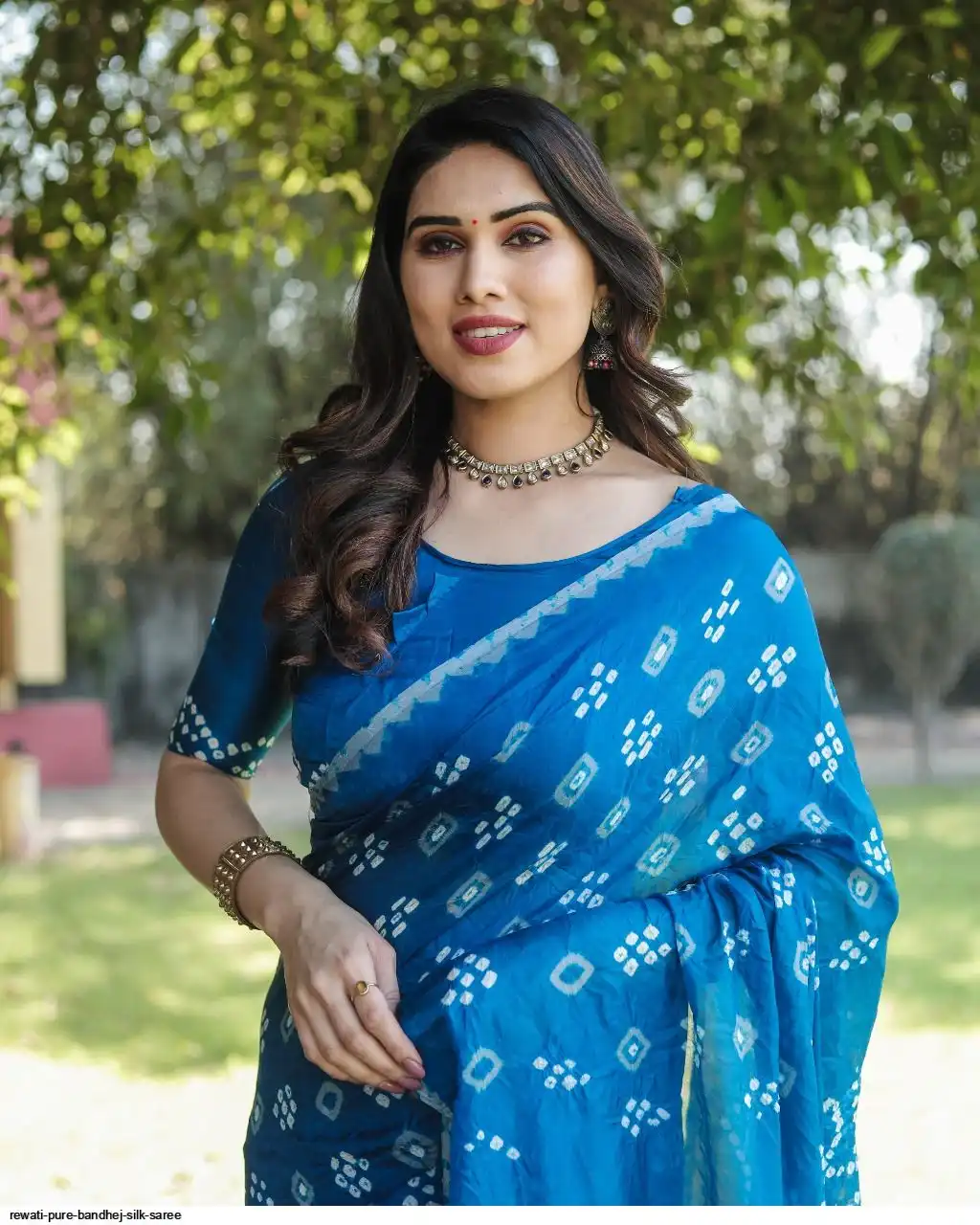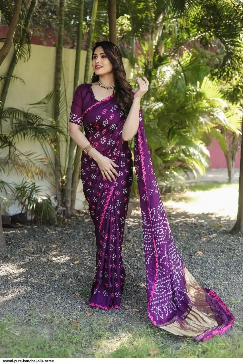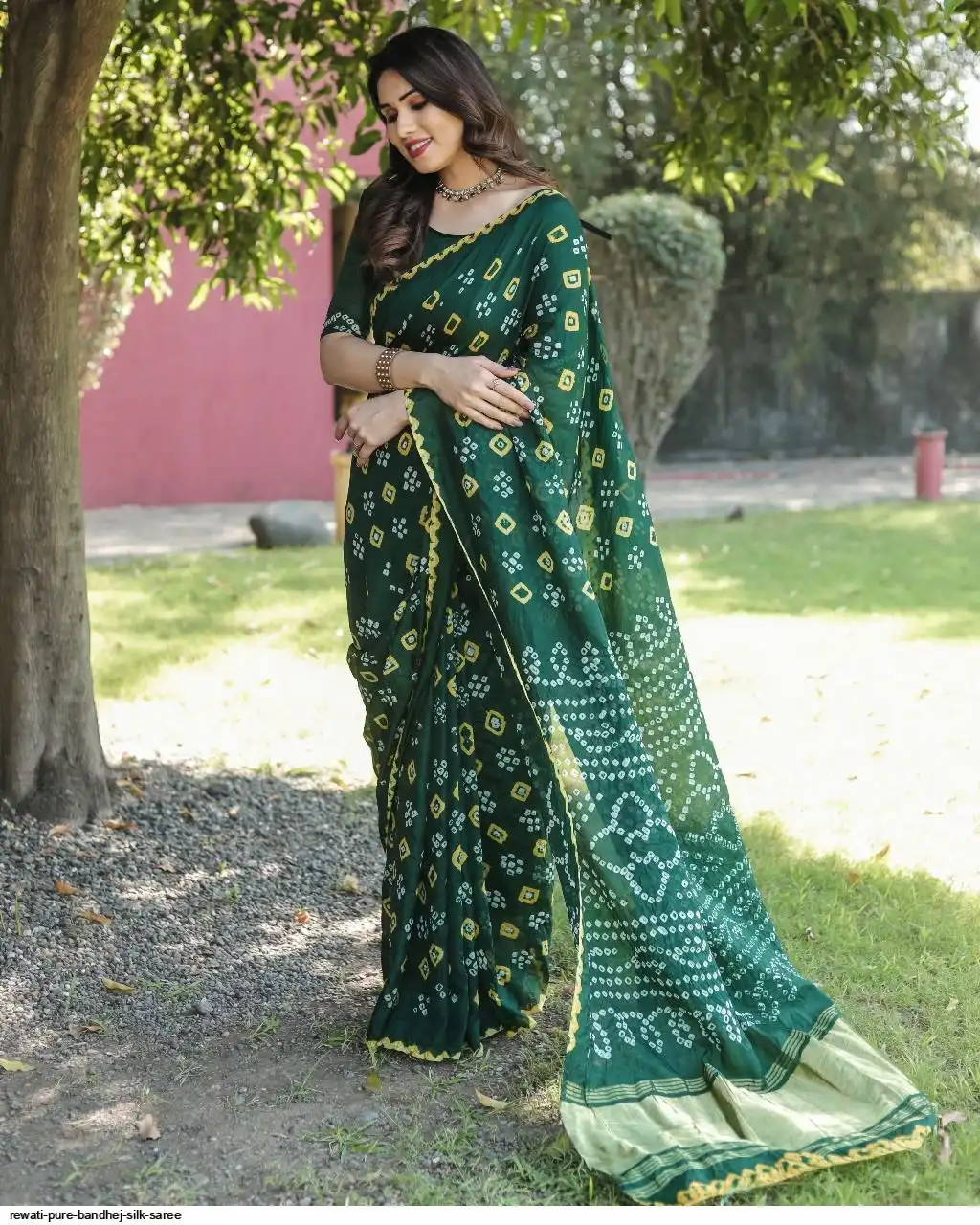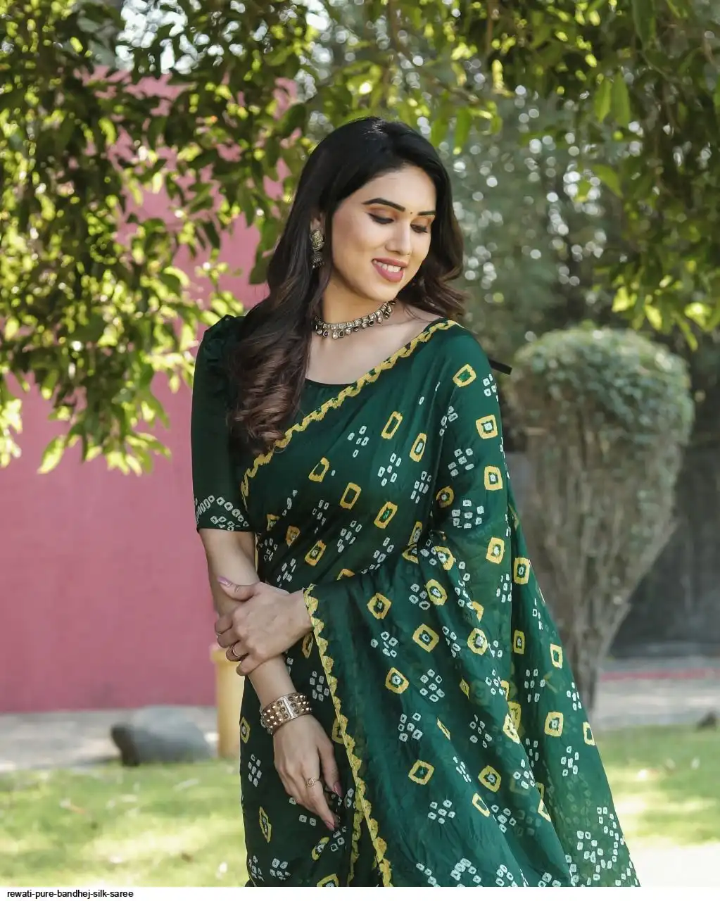 Pure Bandhej silk saree made by *original Bandhej with Bandhej Border with Zari Weaving Rich Tissue Pallu * saree with beautiful Bandhej design and having a Bandhej Rich Pallu.