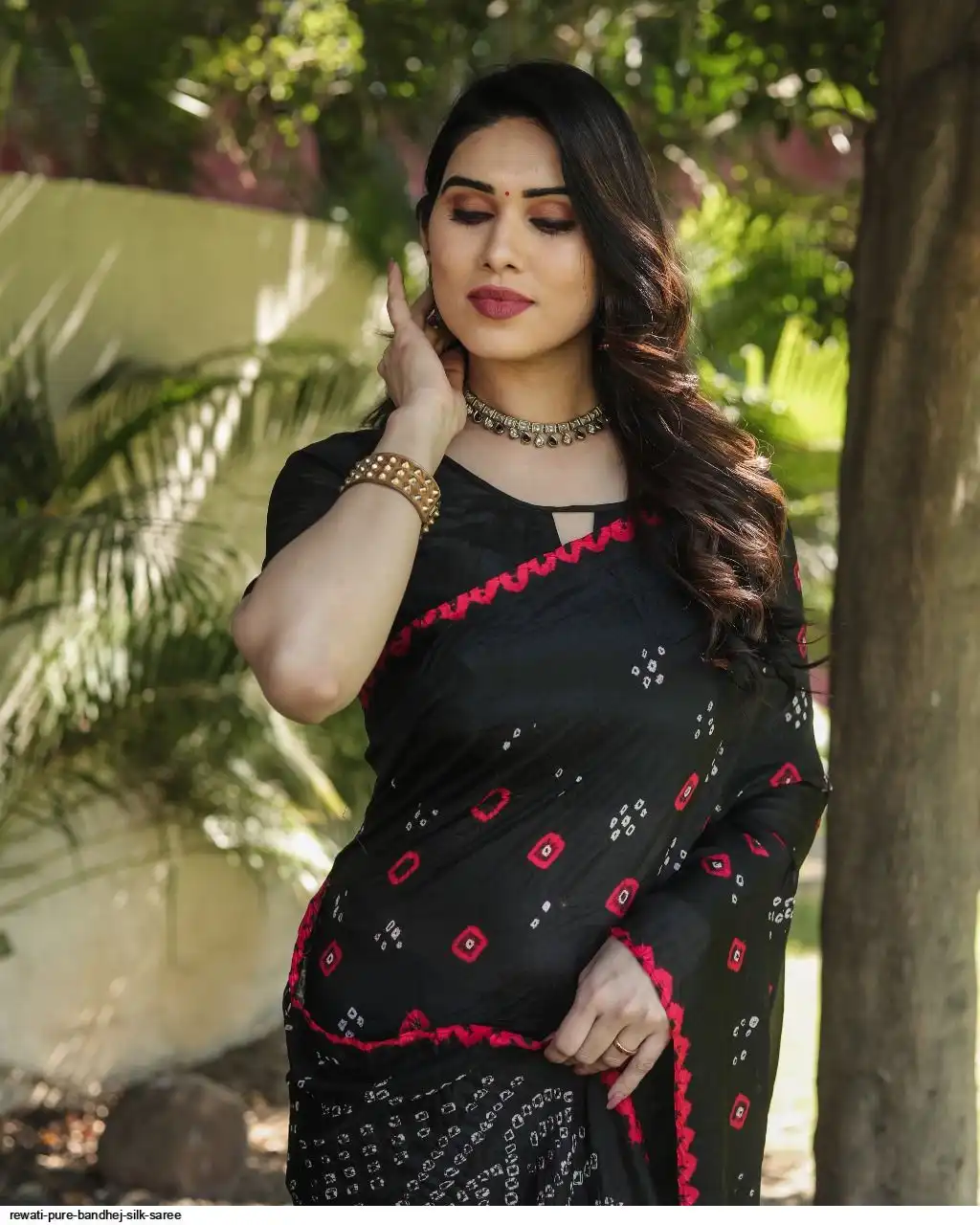 Nevertheless pairs with blouse with Bandhej worked(image shown)