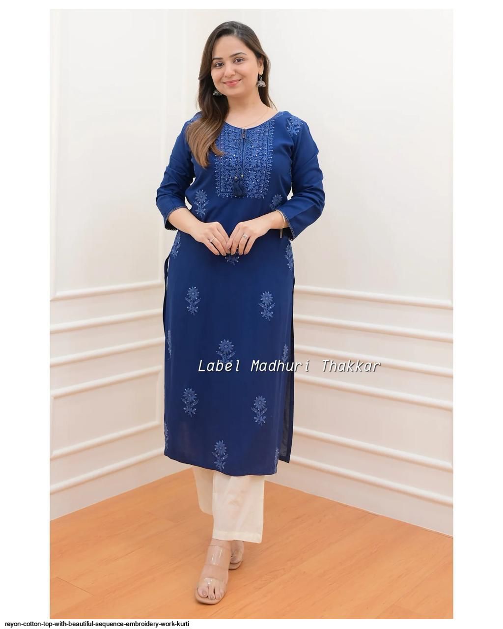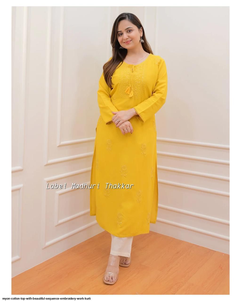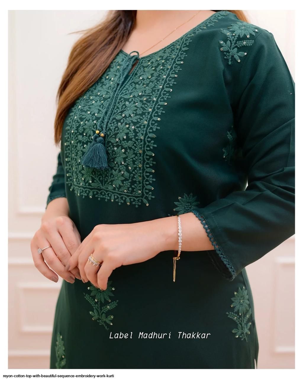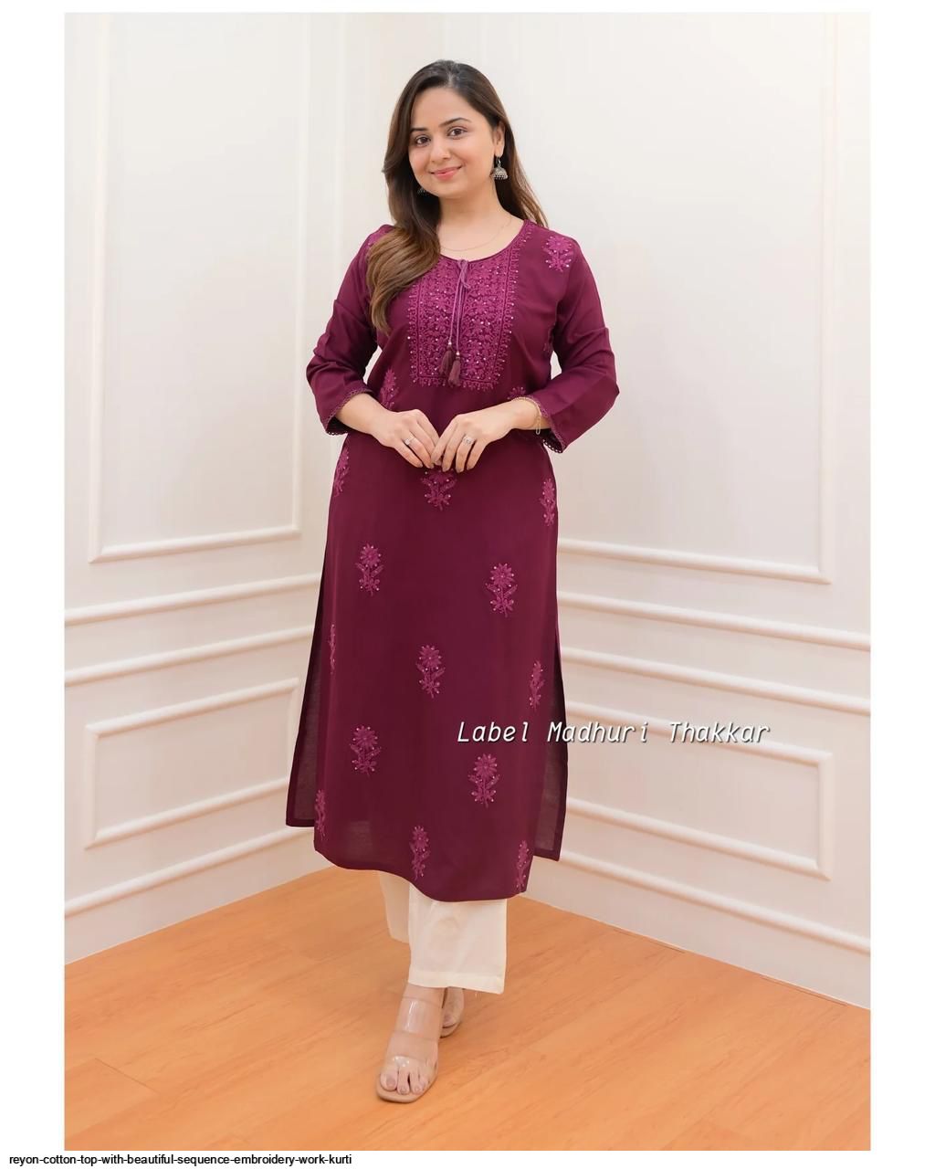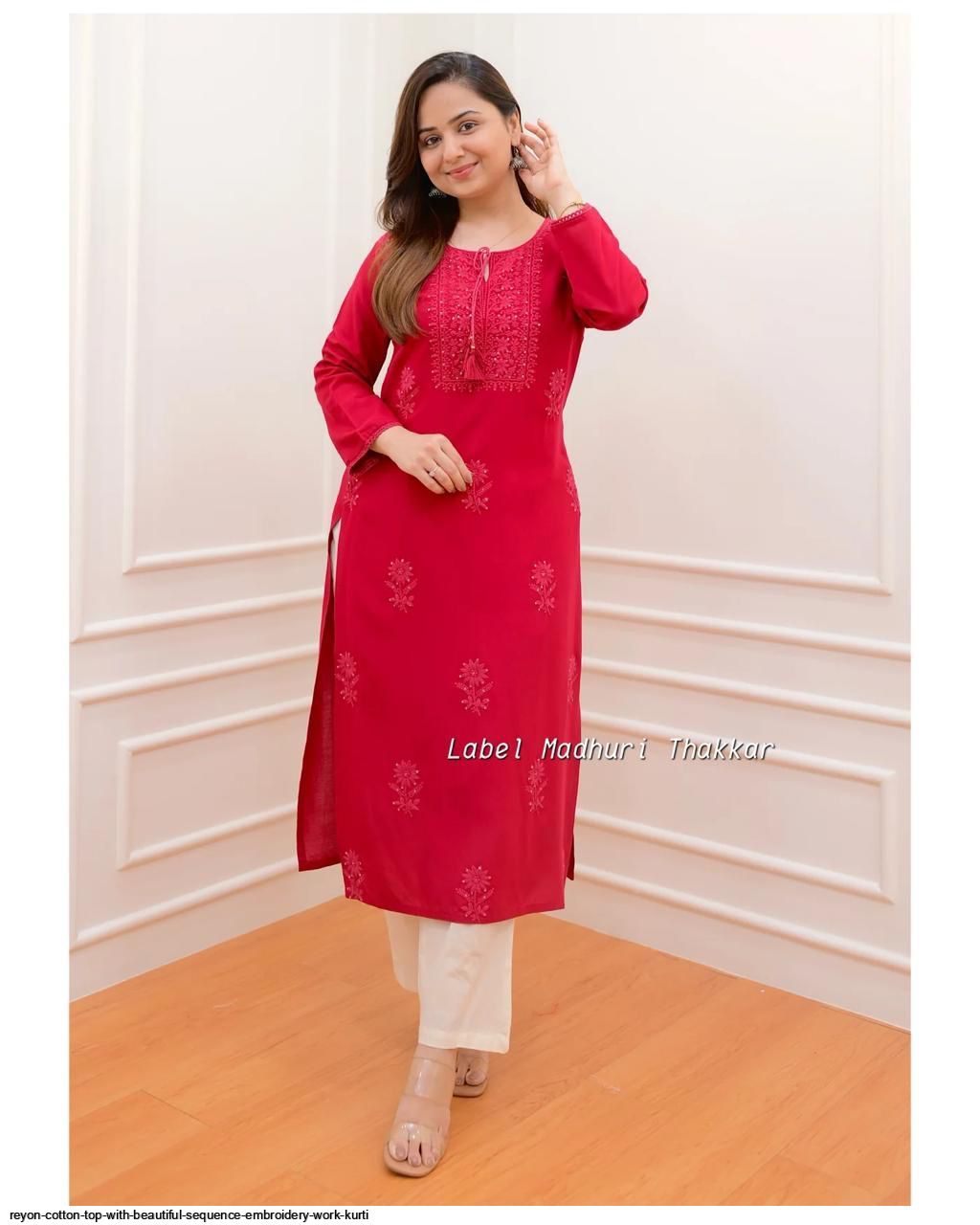 Premium Reyon cotton Top with beautiful sequence embroidery work on yoke & Reyon pent