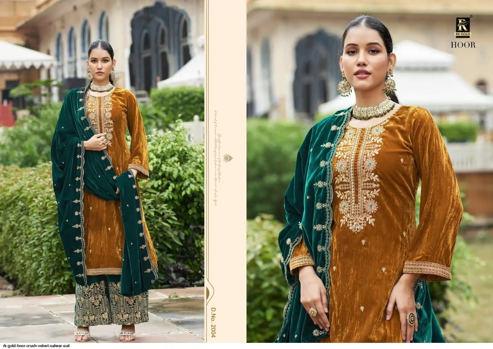 👗Top: Premium CRUSH VELVET Dyed with Designer Embroidery ON NECK, Sleeves And Daman lace; Cut: 2.50 mts