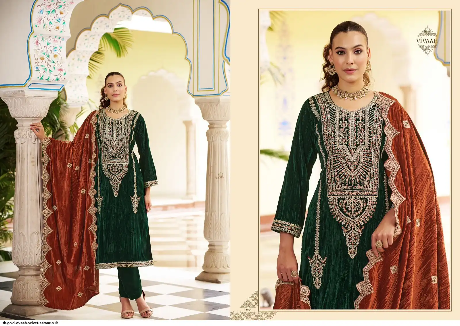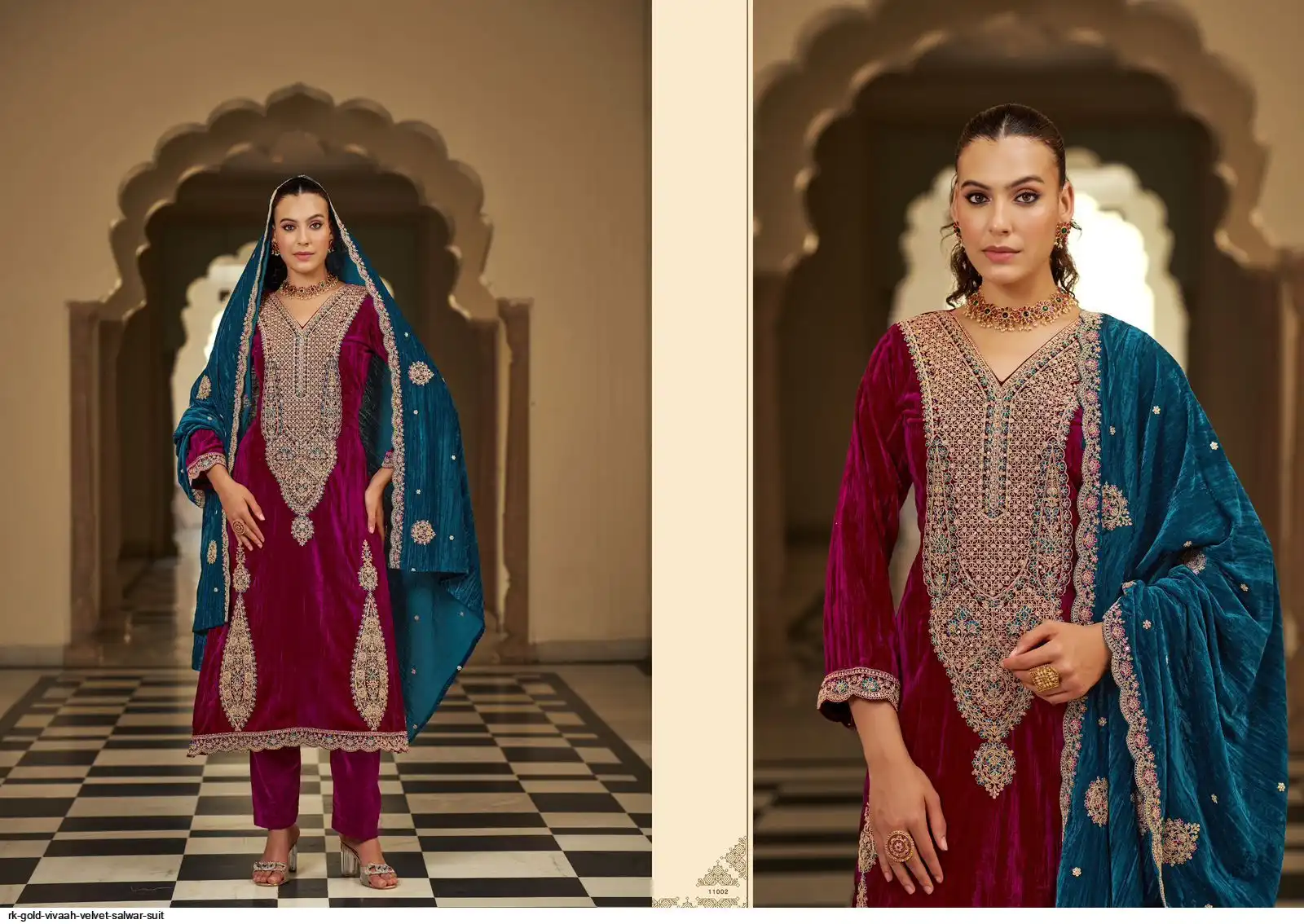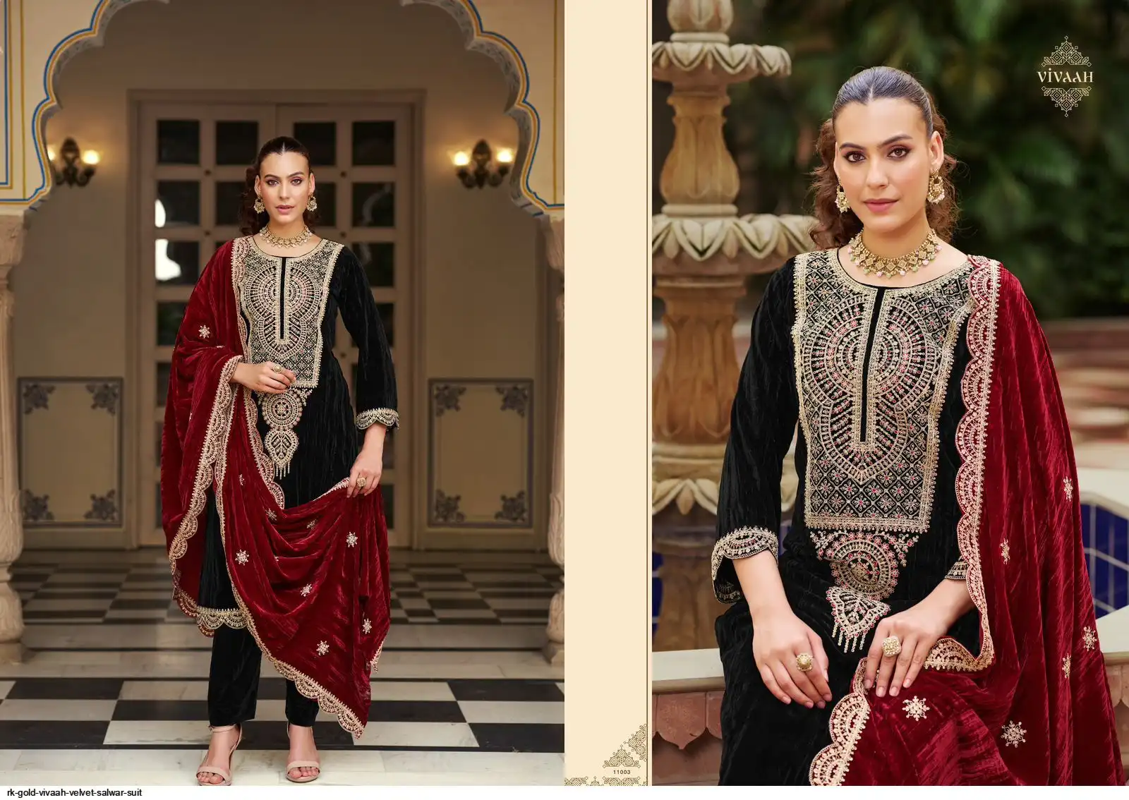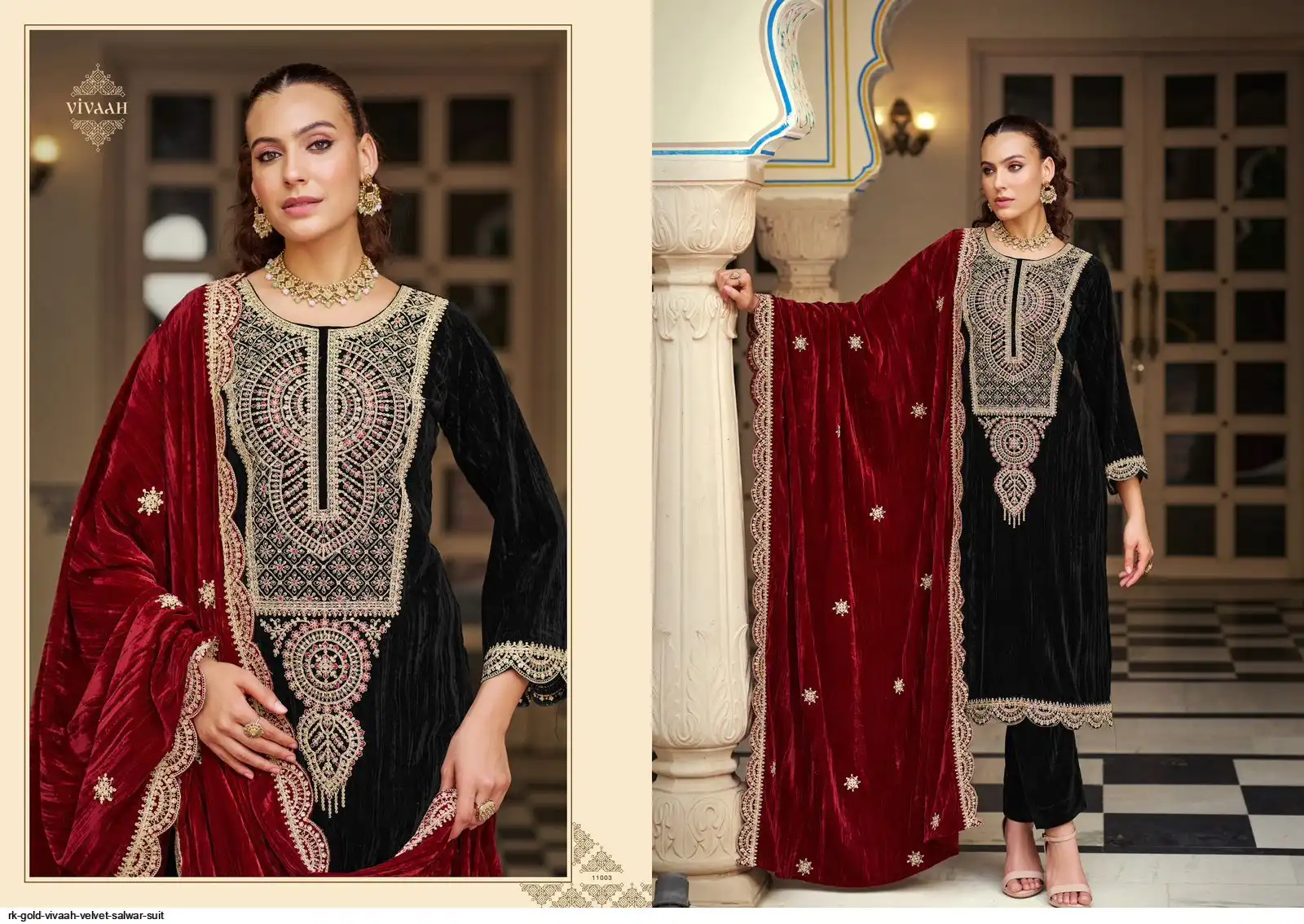 Dupatta: Premium CRUSH VELVET DESIGNER STYLE EMBROIDERYWITH CUT WORK; Cut: 2.25 mts