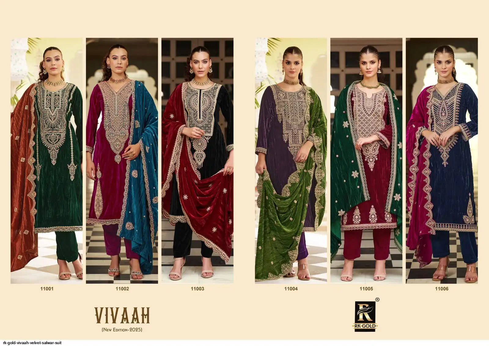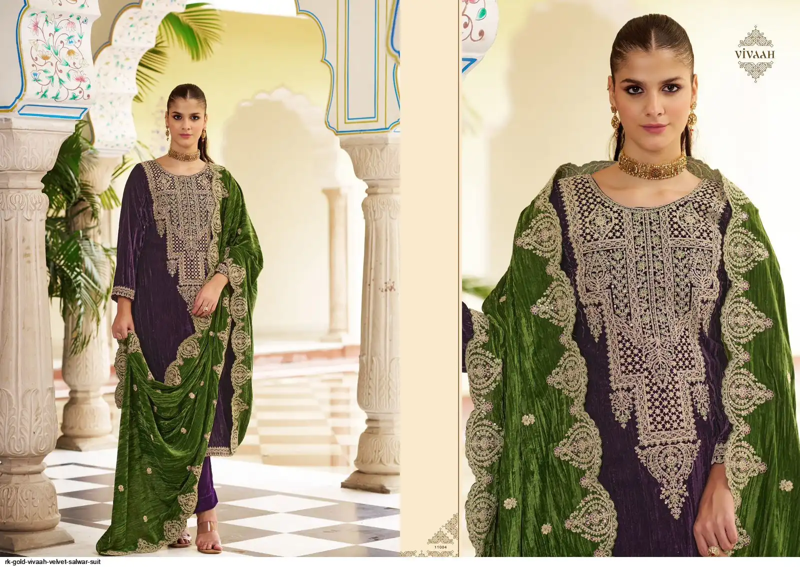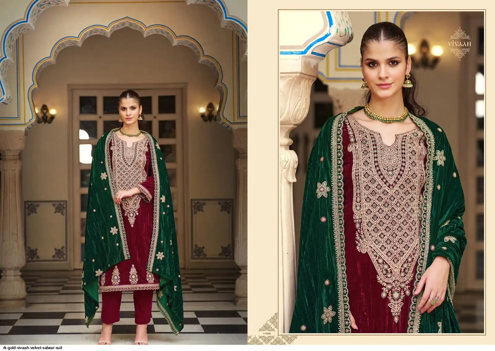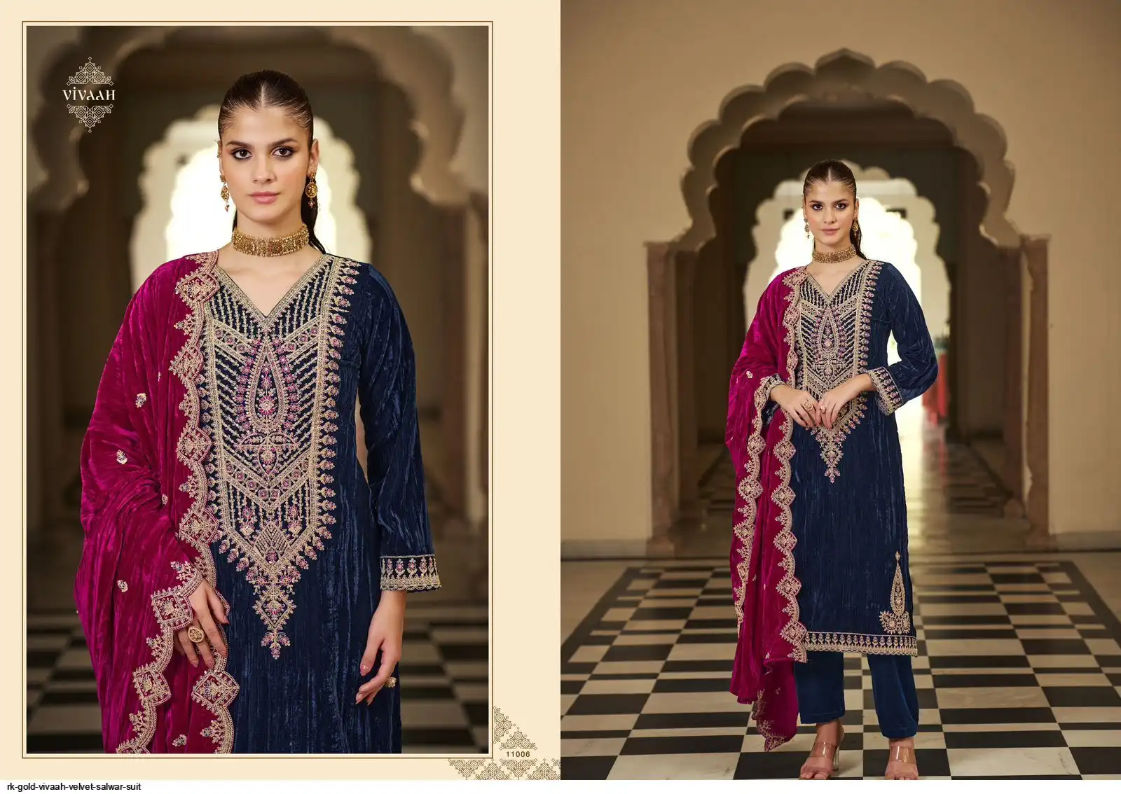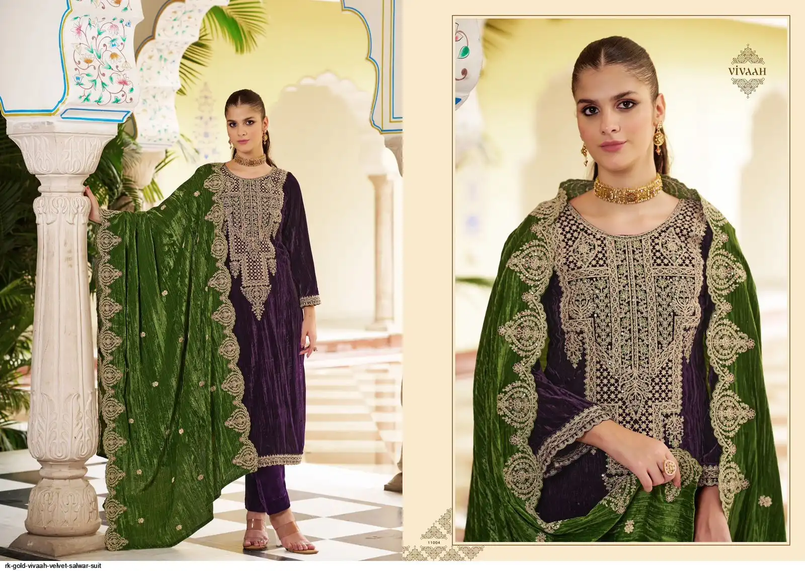 Top: PREMIUM CRUSH VELVET with heavy designer neck, lace on daman & sleeves; Cut: 2.50 mts