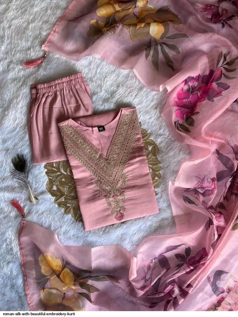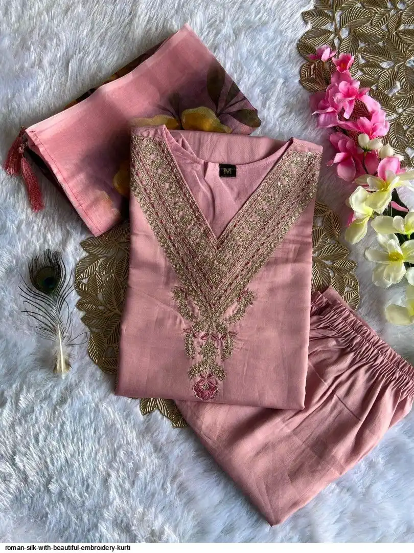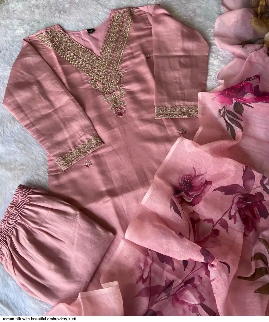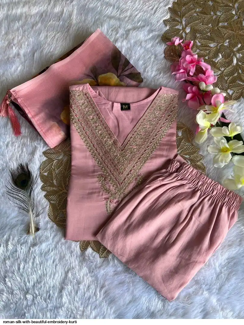 Kurti :- Roman Silk with Beautiful Embroidery With Sequence Work