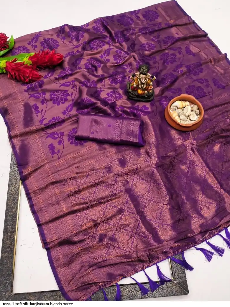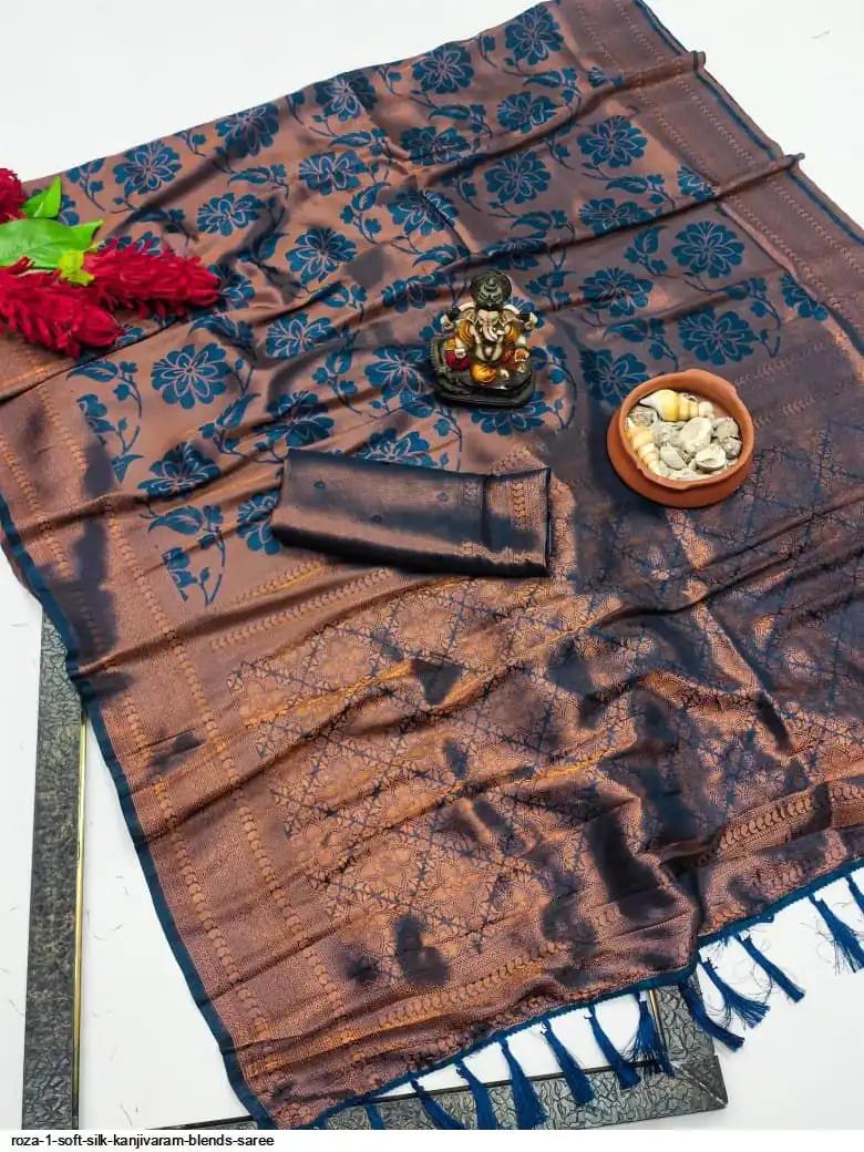 Premium quality soft Silk Kanjivaram blends saree with beautiful weaving exclusive work soft comfy and easy to drape