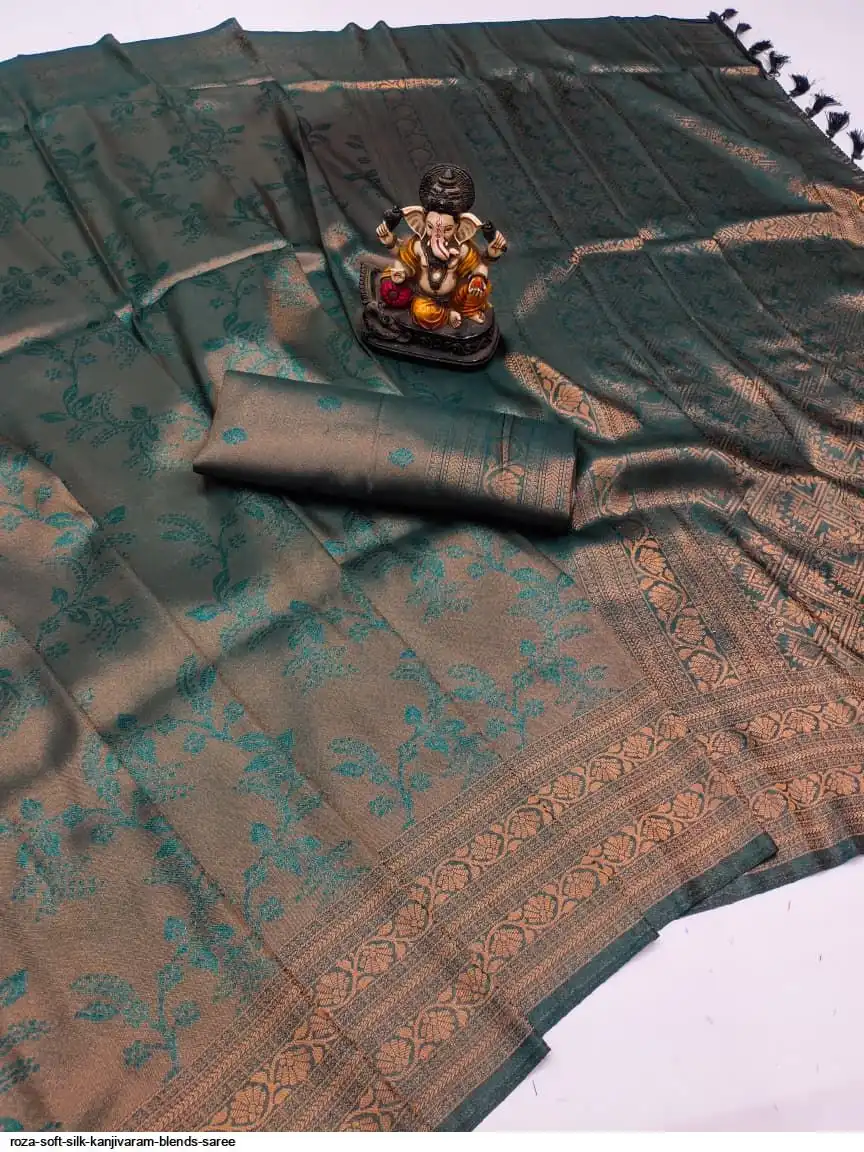 Premium quality soft Silk Kanjivaram blends saree with beautiful weaving exclusive work soft comfy and easy to drape