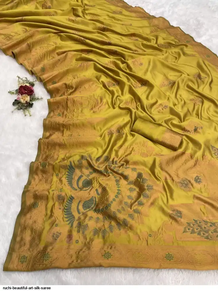 *Beautiful Art Silk Jacquard Border Saree With Unstitched Running Blouse For Women Wedding Wear Party*
