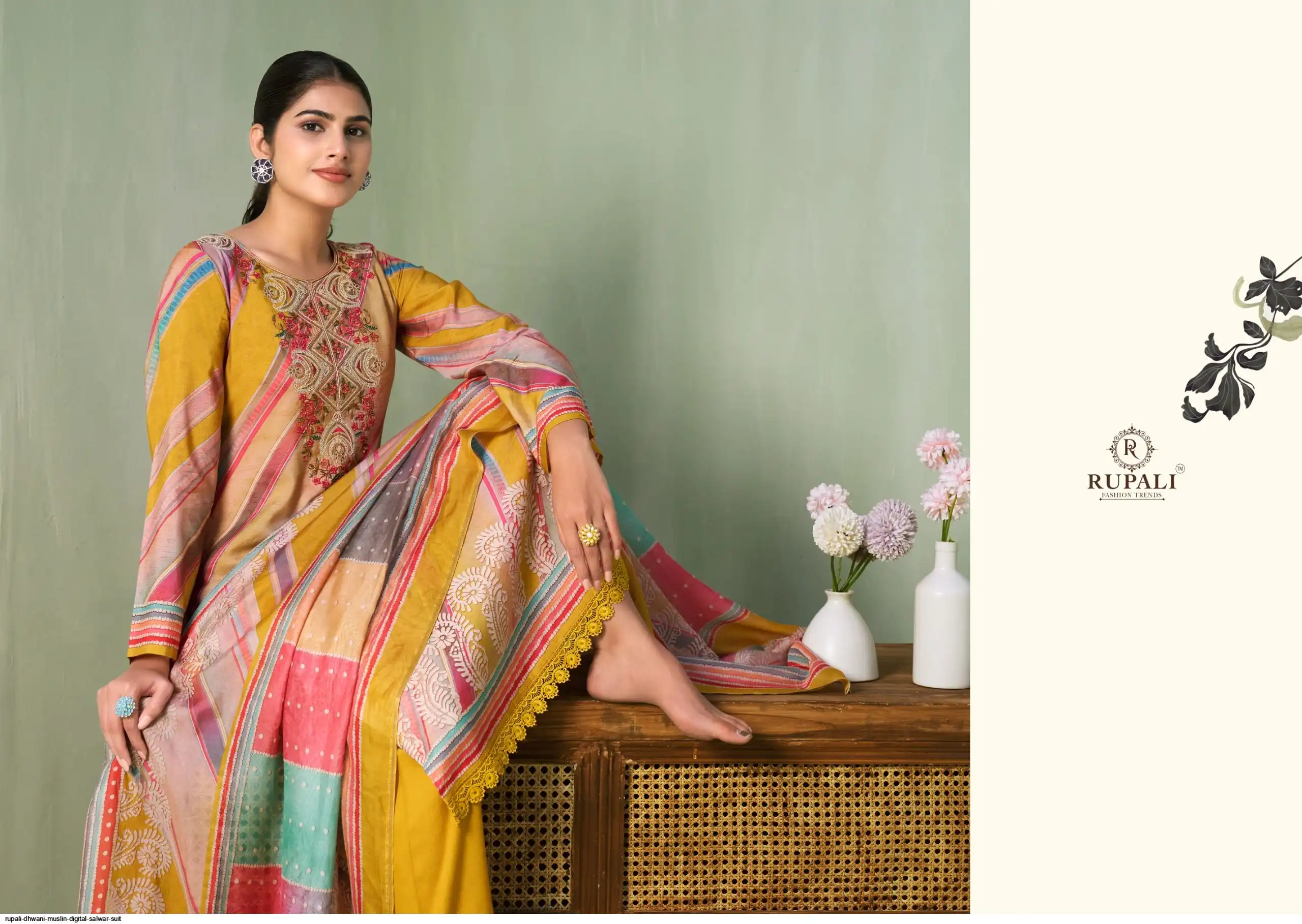 🩷TOP:- MUSLIN DIGITAL PRINTED (HEAVY EMBROIDERY V- NACK PATCH STICH....+ HEAVY HANDWORK ON TAI WORKS....