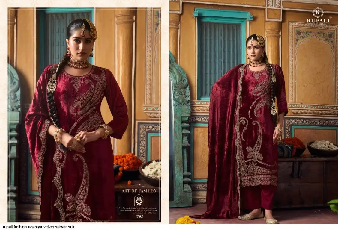DUPATTA:- PURE VISCOSE VELVET+ VELVET EMBROIDERY STICH 4 SIDE KODING EMBROIDERY WORK....
