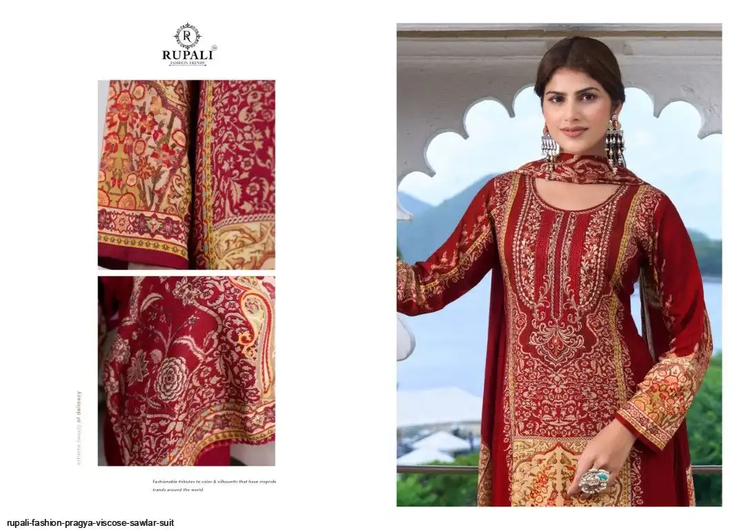 TOP:- PURE VISCOSE PASHMINA DIGITAL PRINTED (HEAVY EMBROIDERY NECK PATCH WORK STICHED ON NECK ....