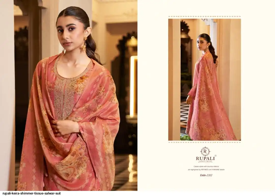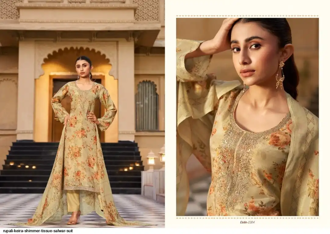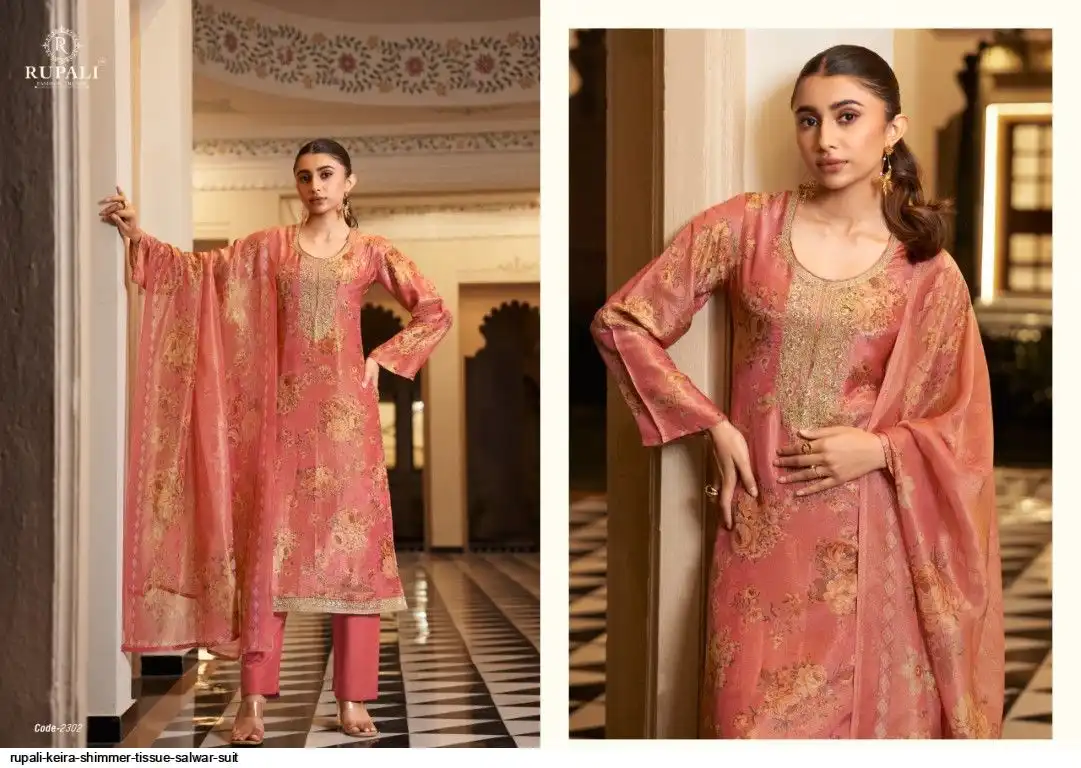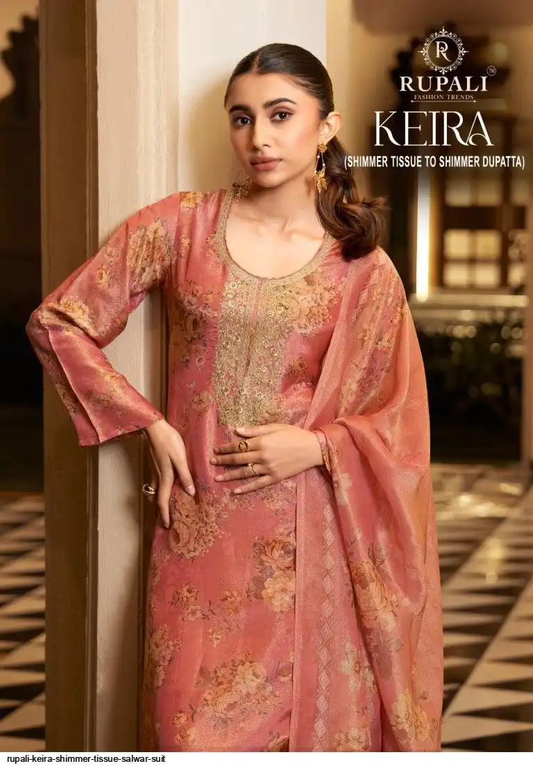 TOP:- PURE VISCOSE MUSLIN SHIMMER TISSUE DIGITAL PRINTED (HEAVY EMBROIDERY NACK+ DAMAN WORK).....