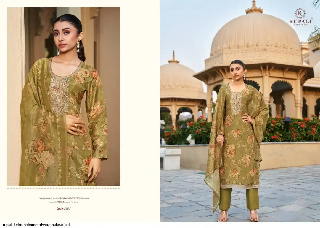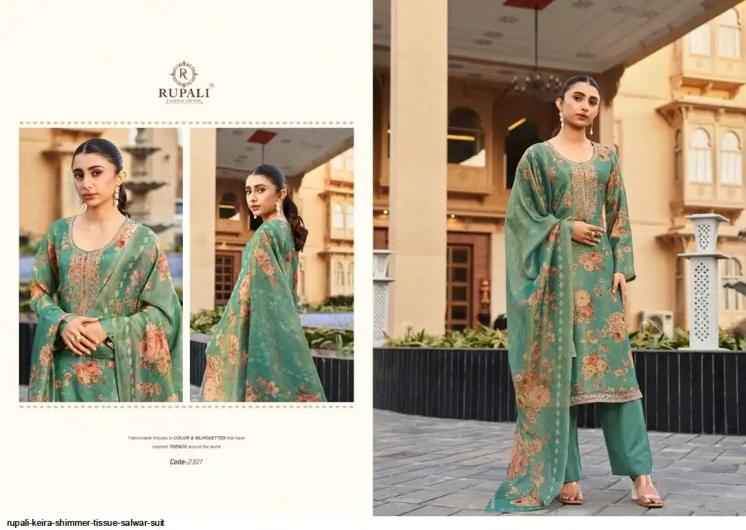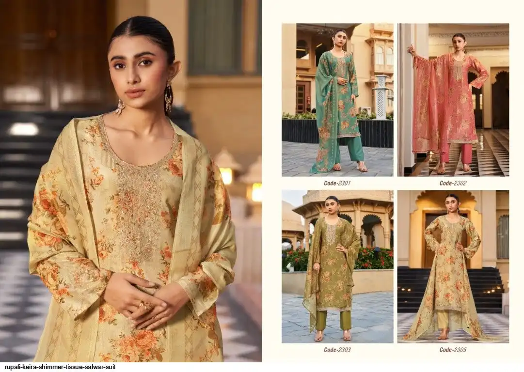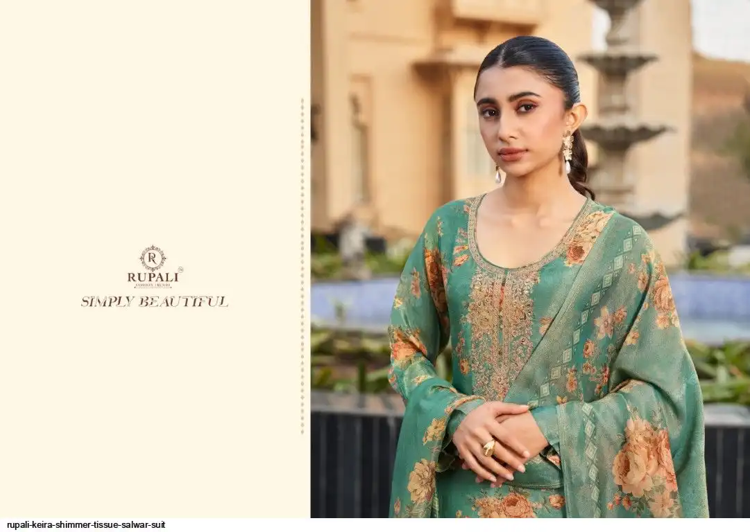 TOP:- PURE VISCOSE MUSLIN SHIMMER TISSUE DIGITAL PRINTED (HEAVY EMBROIDERY NACK+ DAMAN WORK).....