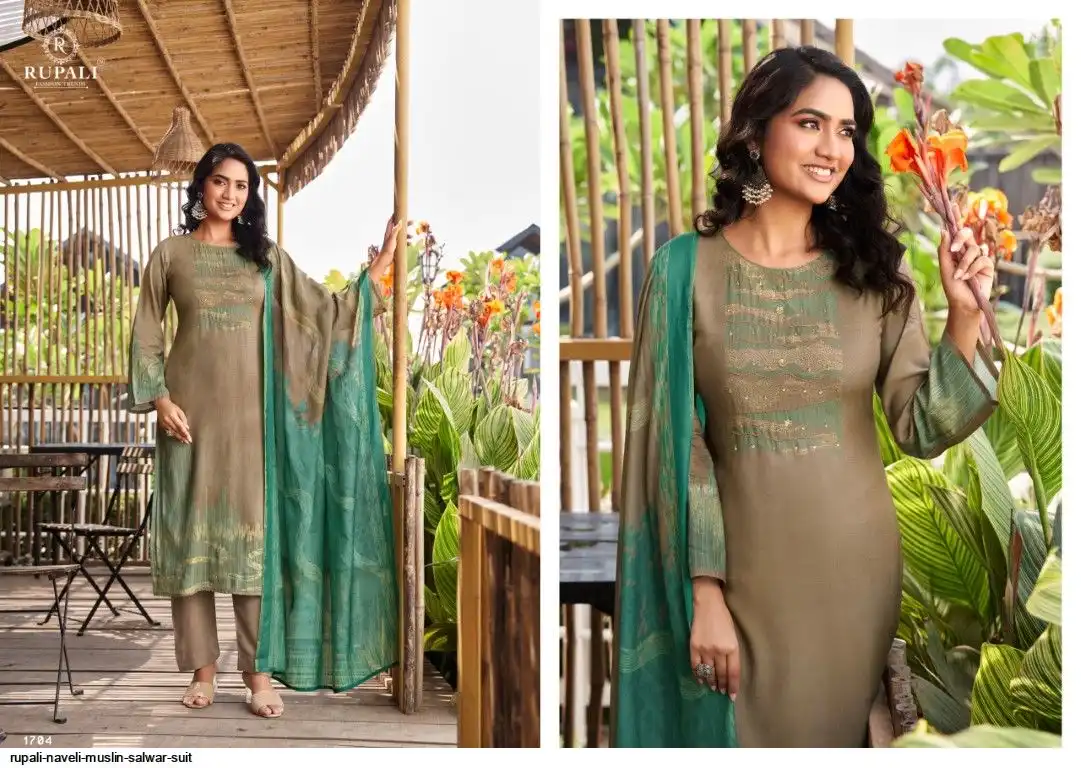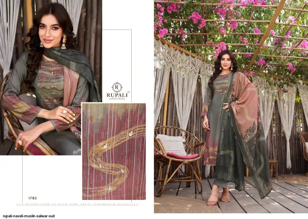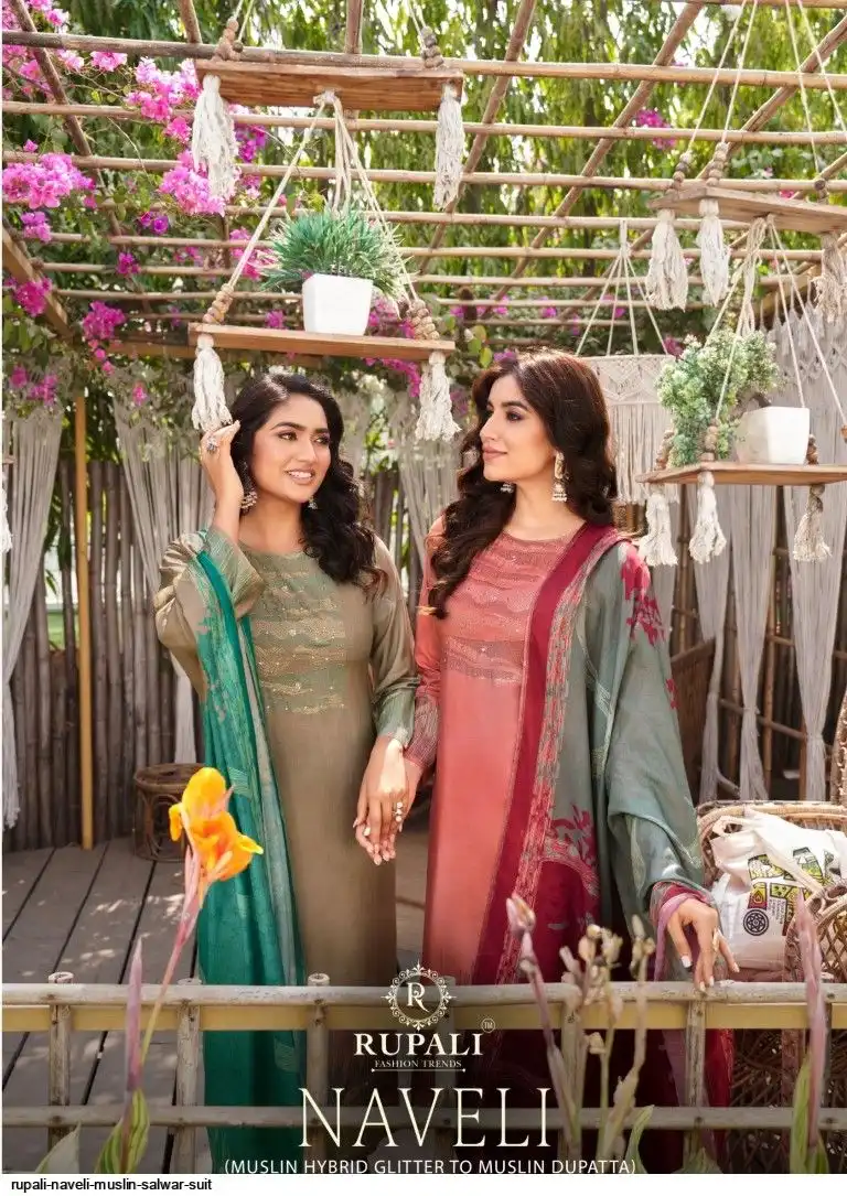 TOP:- DIGITAL PRINTED F/B/SLEEVES+(HYBRID GLITTER PRINT)....WITH FANCY HANDWORKS+ LESSES