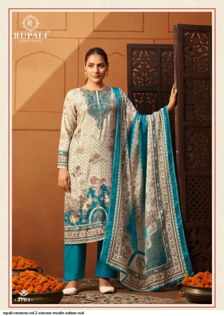 TOP:- PURE VISCOSE MUSLIN DIGITAL PRINTED (HEAVY AARI+ HANDWORKS STICH WORK).....