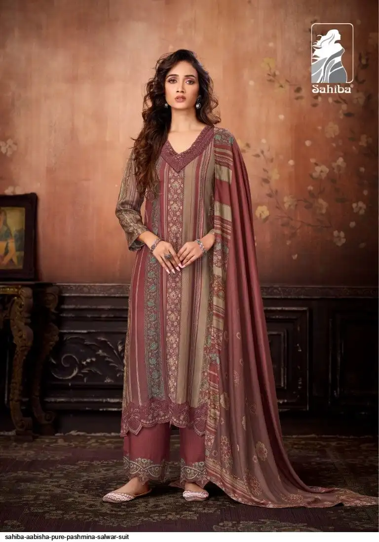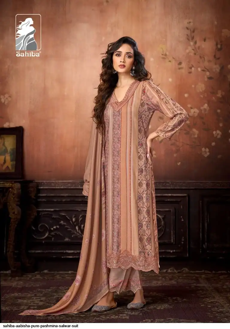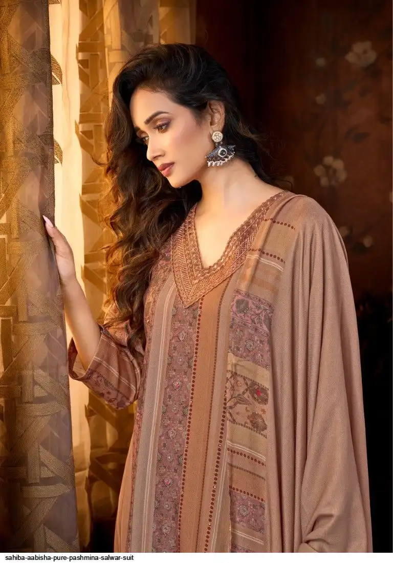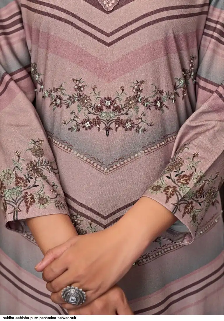 TOP - PURE PASHMINA DIGITAL PRINT WITH HAND WORK AND FANCY EMB. DAMAN AND NECK PLACKET