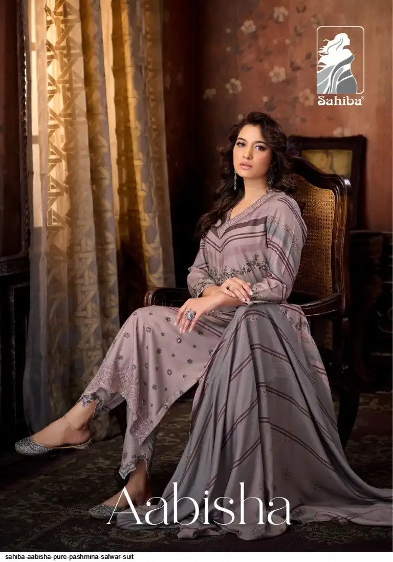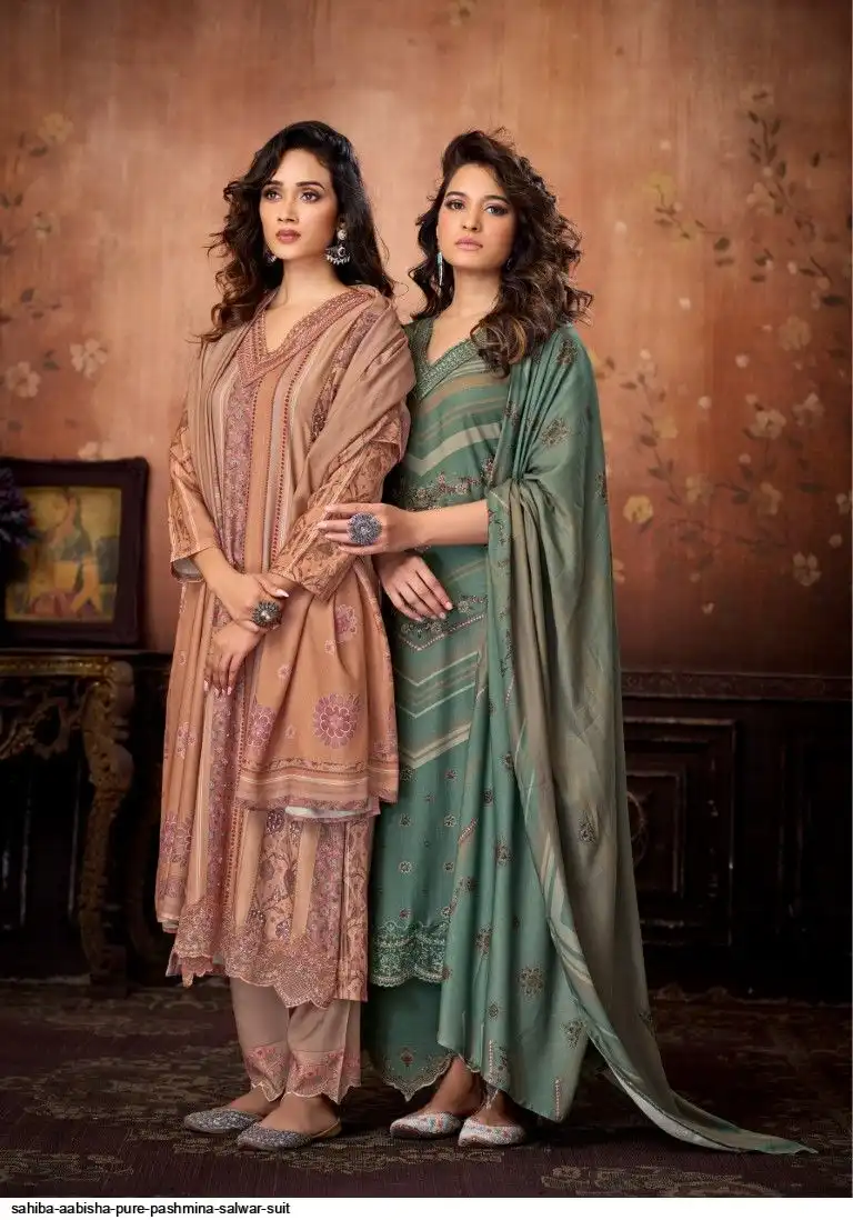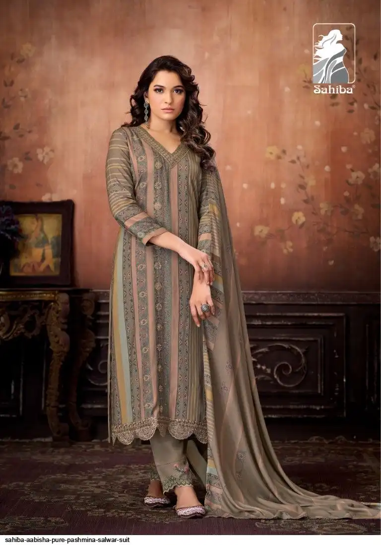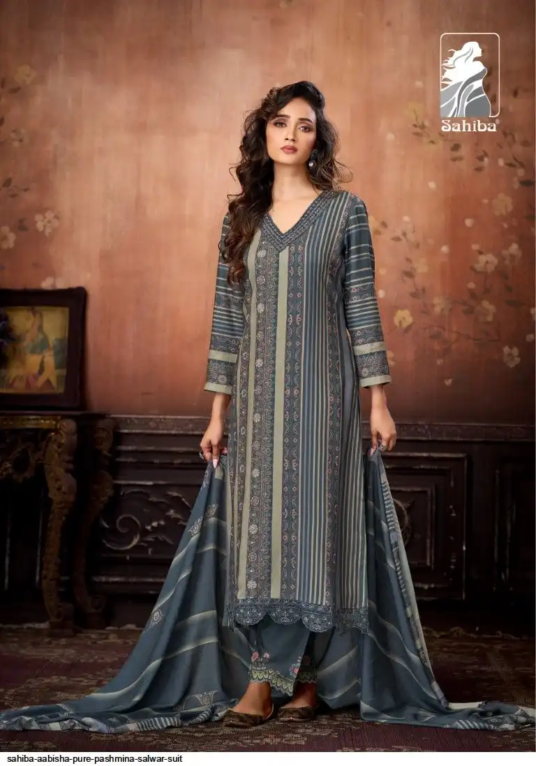TOP - PURE PASHMINA DIGITAL PRINT WITH HAND WORK AND FANCY EMB. DAMAN AND NECK PLACKET