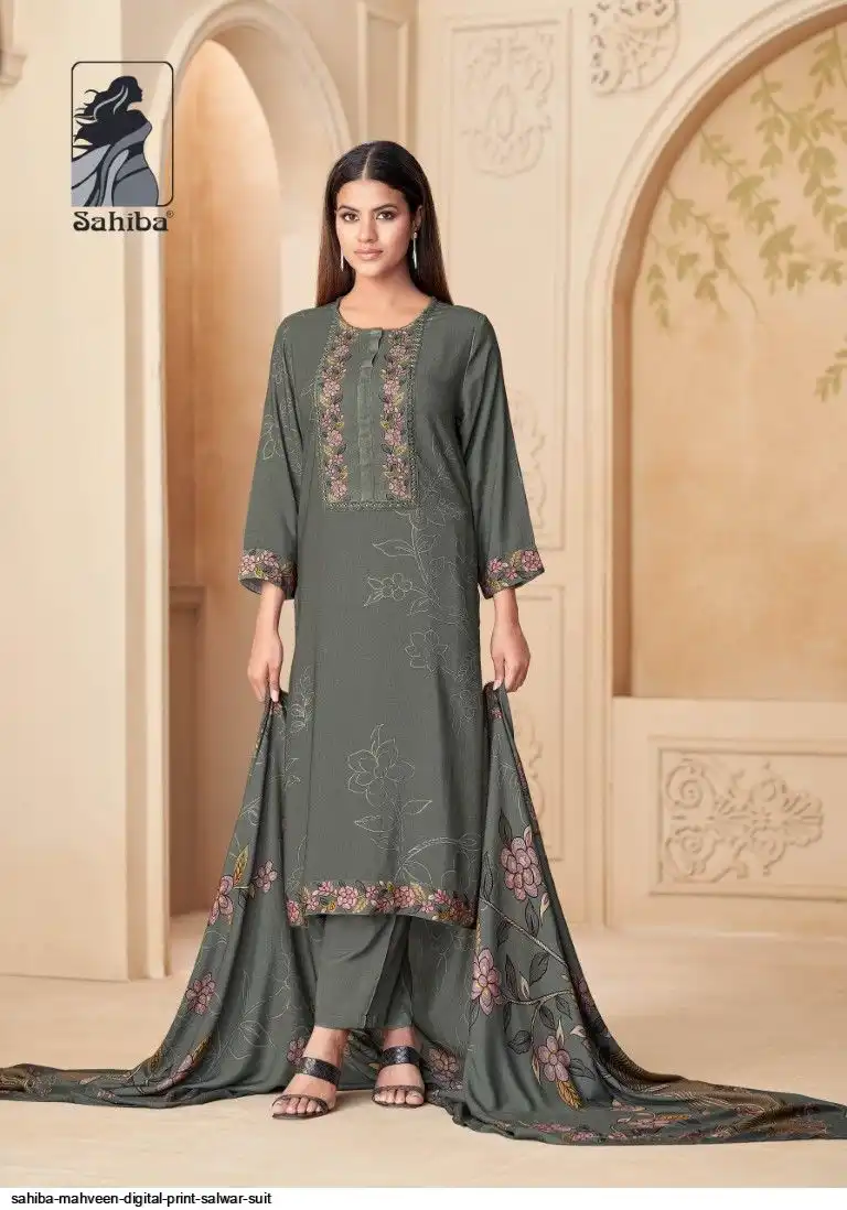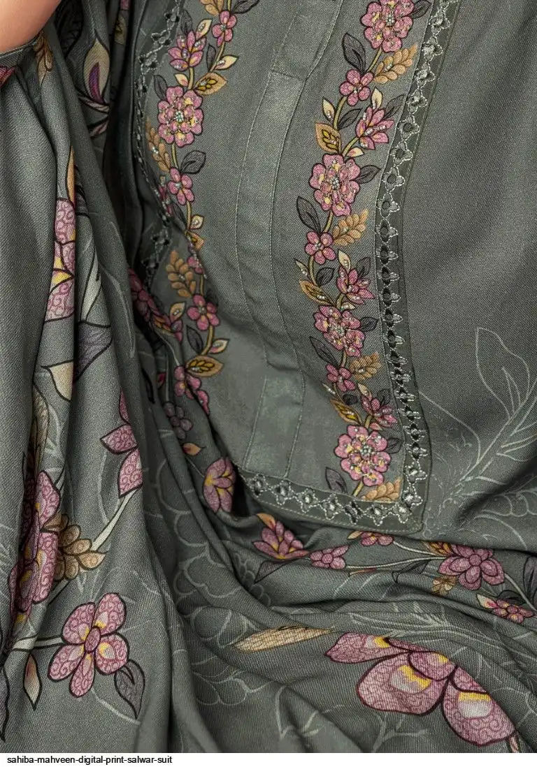 PRINTED NECK WITH HAND WORK AND SILK EMBROIDERY PATTI DAMAN AND SLEEVE DIGITAL PRINT