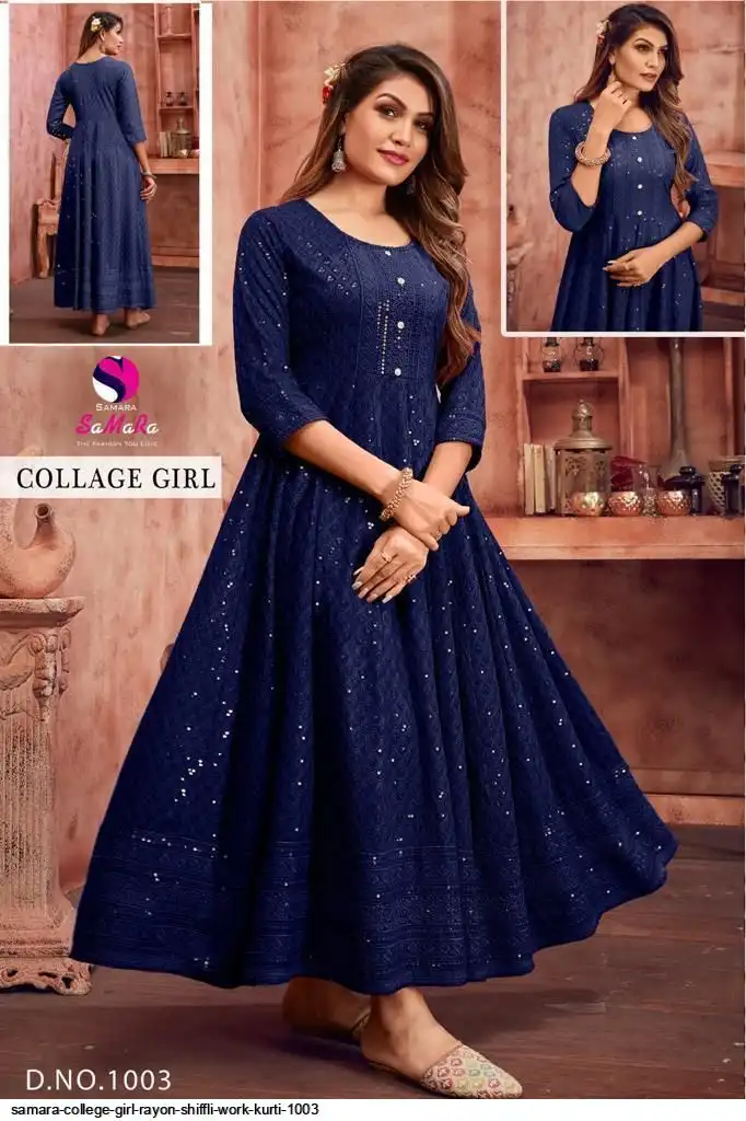 SAMARA COLLEGE GIRL RAYON SHIFFLI WORK KURTI 1003
