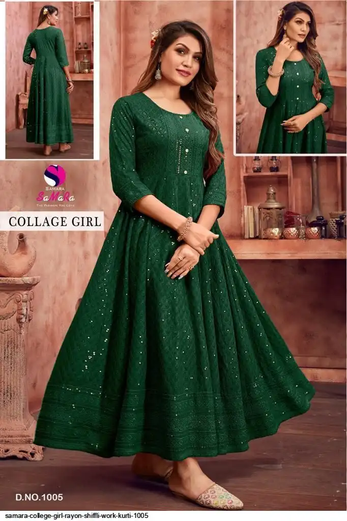 SAMARA COLLEGE GIRL RAYON SHIFFLI WORK KURTI 1005