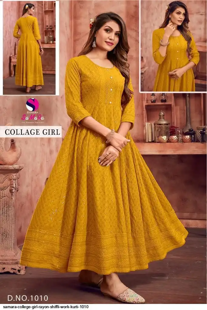 SAMARA COLLEGE GIRL RAYON SHIFFLI WORK KURTI 1010