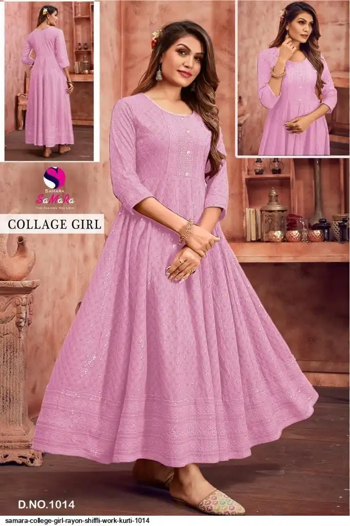 SAMARA COLLEGE GIRL RAYON SHIFFLI WORK KURTI 1014