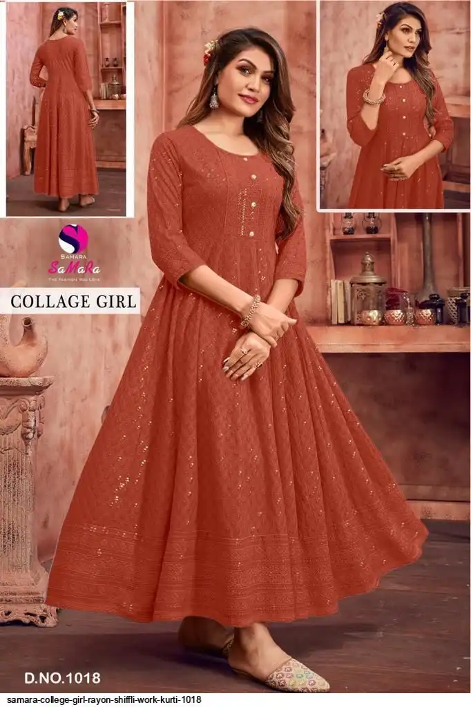 SAMARA COLLEGE GIRL RAYON SHIFFLI WORK KURTI 1018