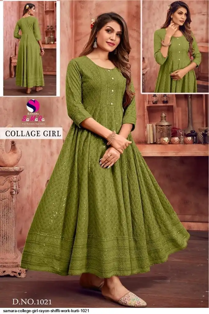 SAMARA COLLEGE GIRL RAYON SHIFFLI WORK KURTI 1021