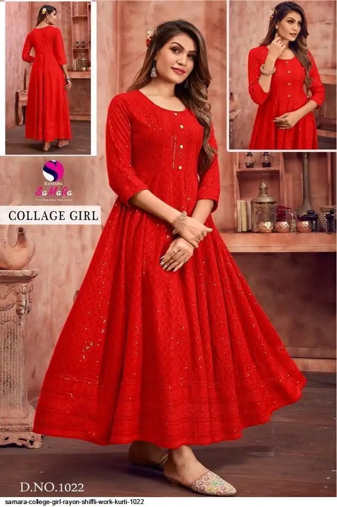 SAMARA COLLEGE GIRL RAYON SHIFFLI WORK KURTI 1022