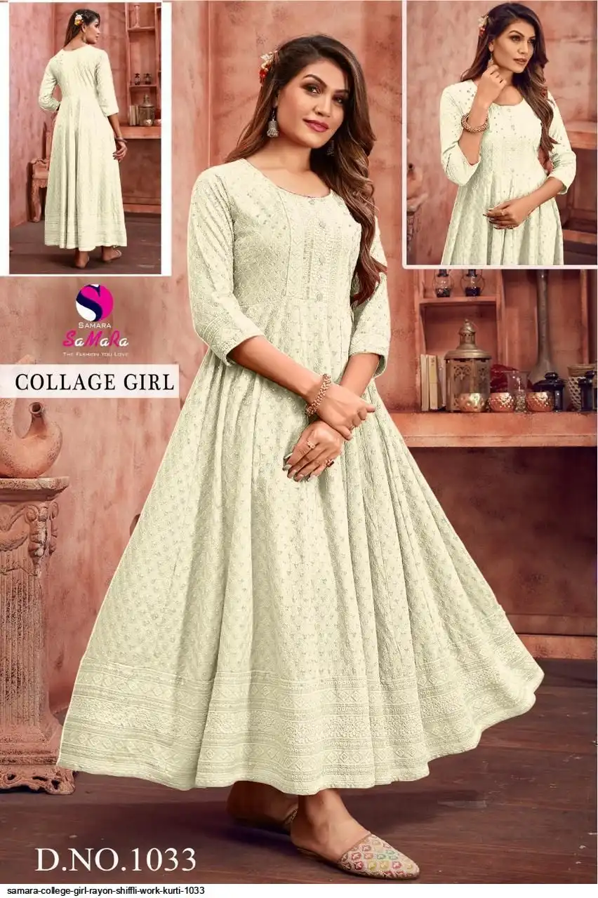 SAMARA COLLEGE GIRL RAYON SHIFFLI WORK KURTI 1033