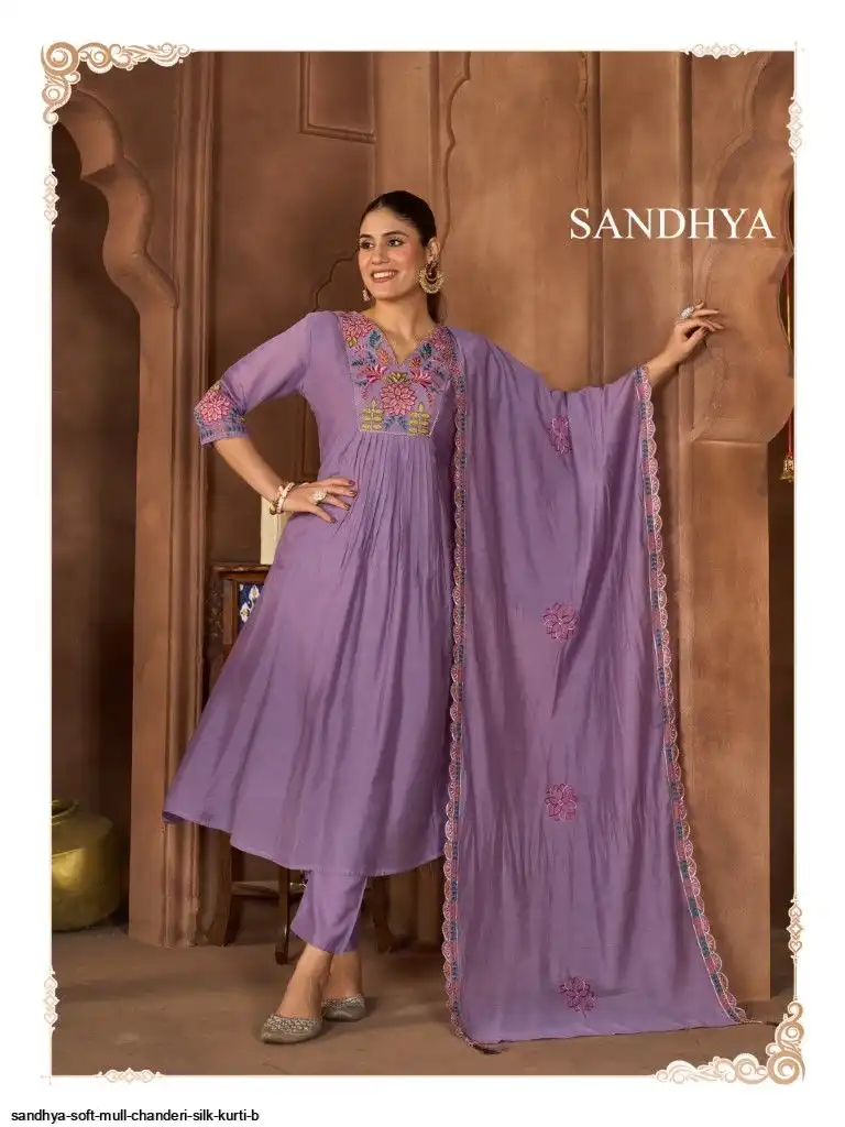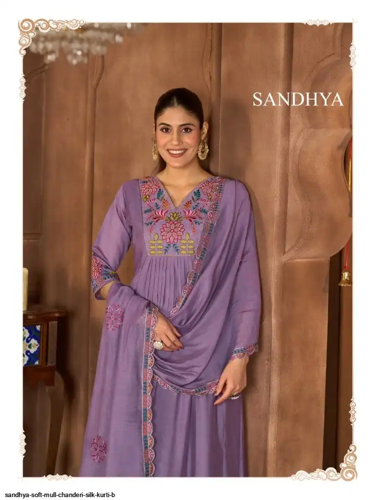SANDHYA SOFT MULL CHANDERI SILK KURTI B