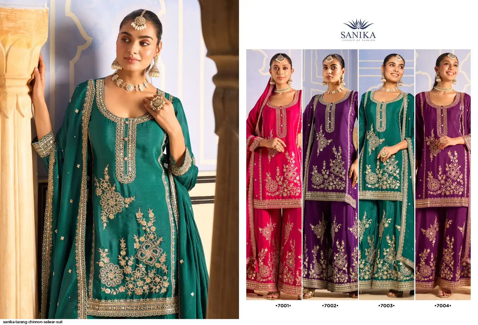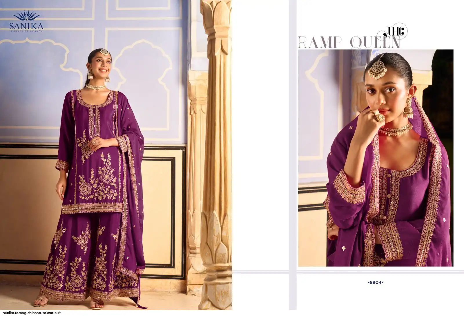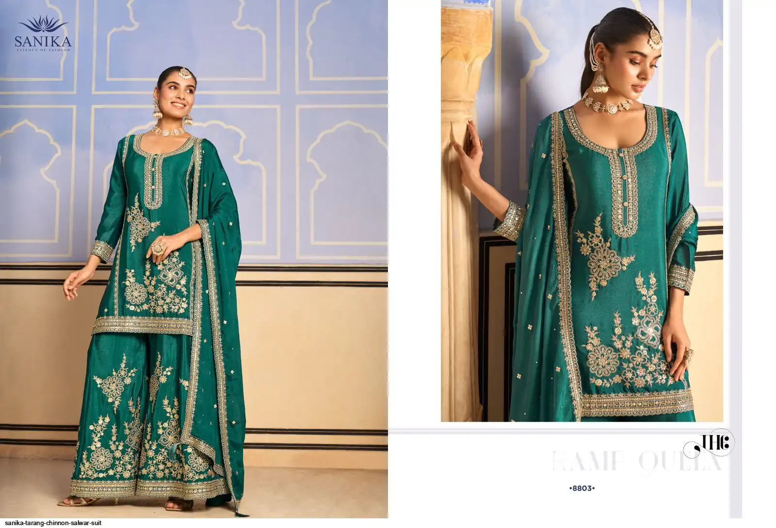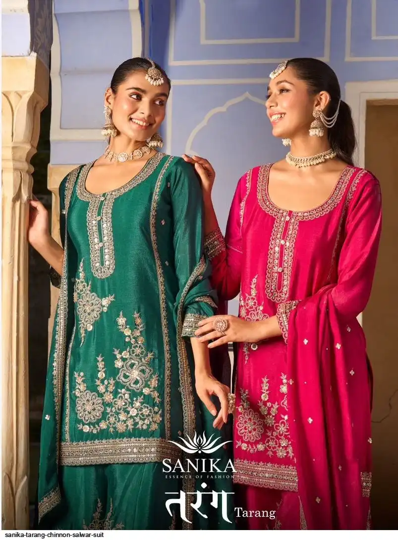 FABRIC - PREMIUM CHINNON SILK ( HEAVY EMBROIDERED CHINON TOP WITH HAND EMBLISSIED MIRROR WORK WITH EMBROIDERED PLAZZO PANT AND EMBROIDERED AND HAND WORK DUPPTA )