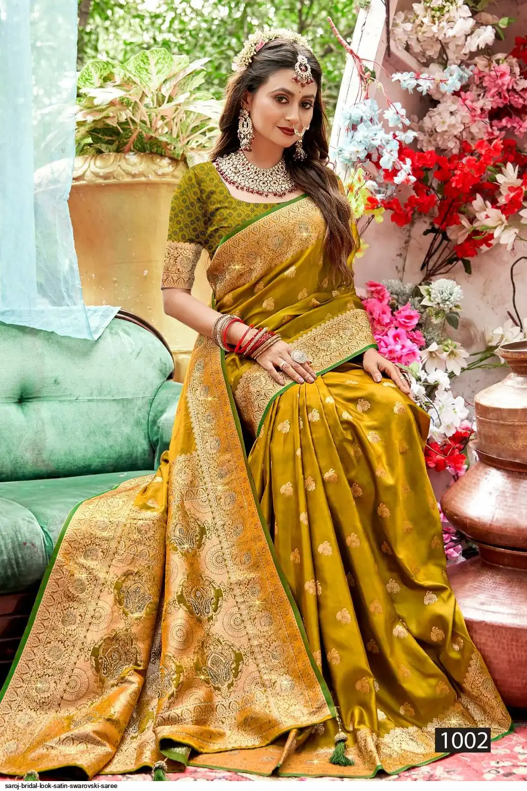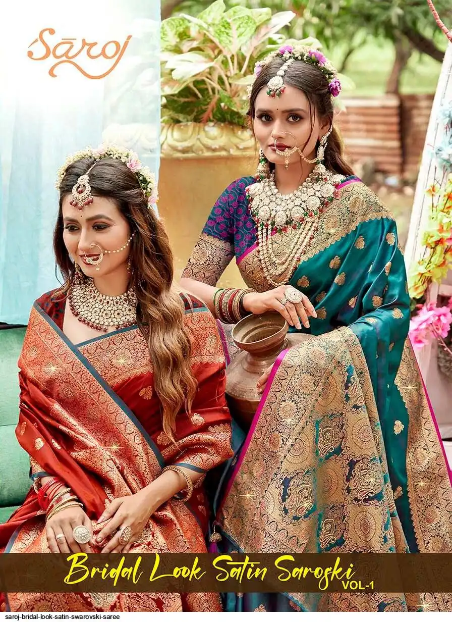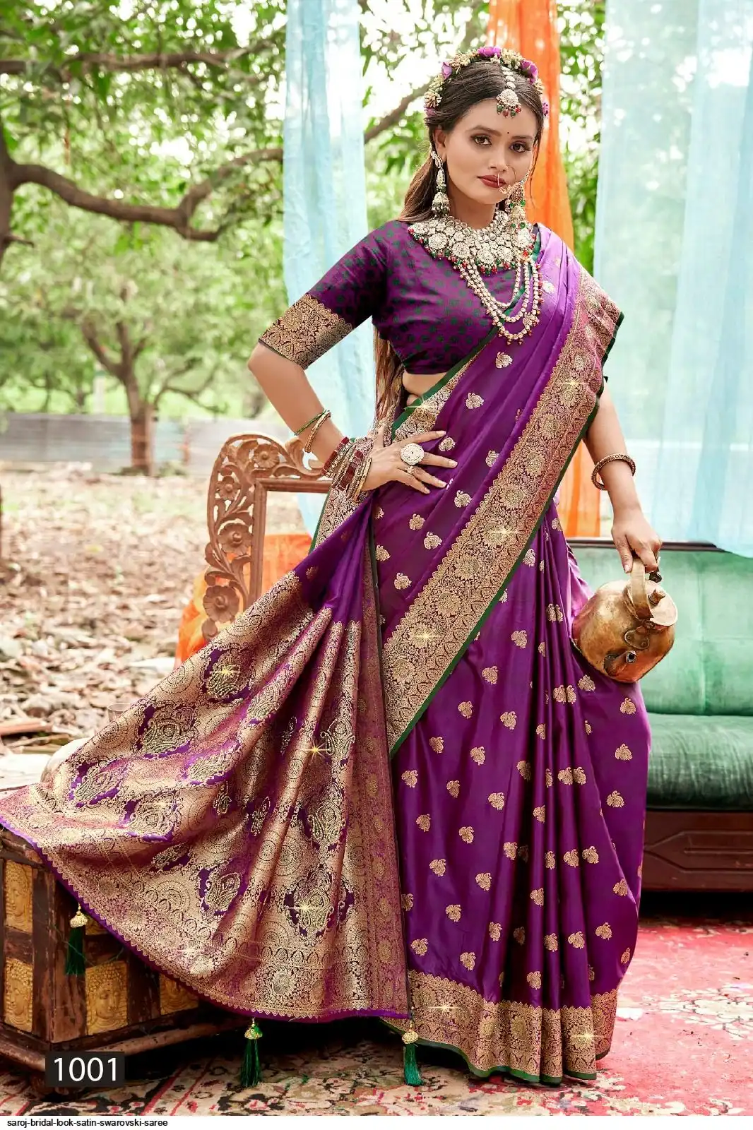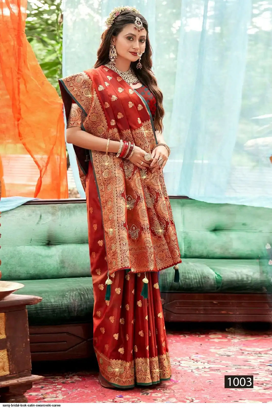 SAROJ BRIDAL LOOK SATIN SWAROVSKI SAREE