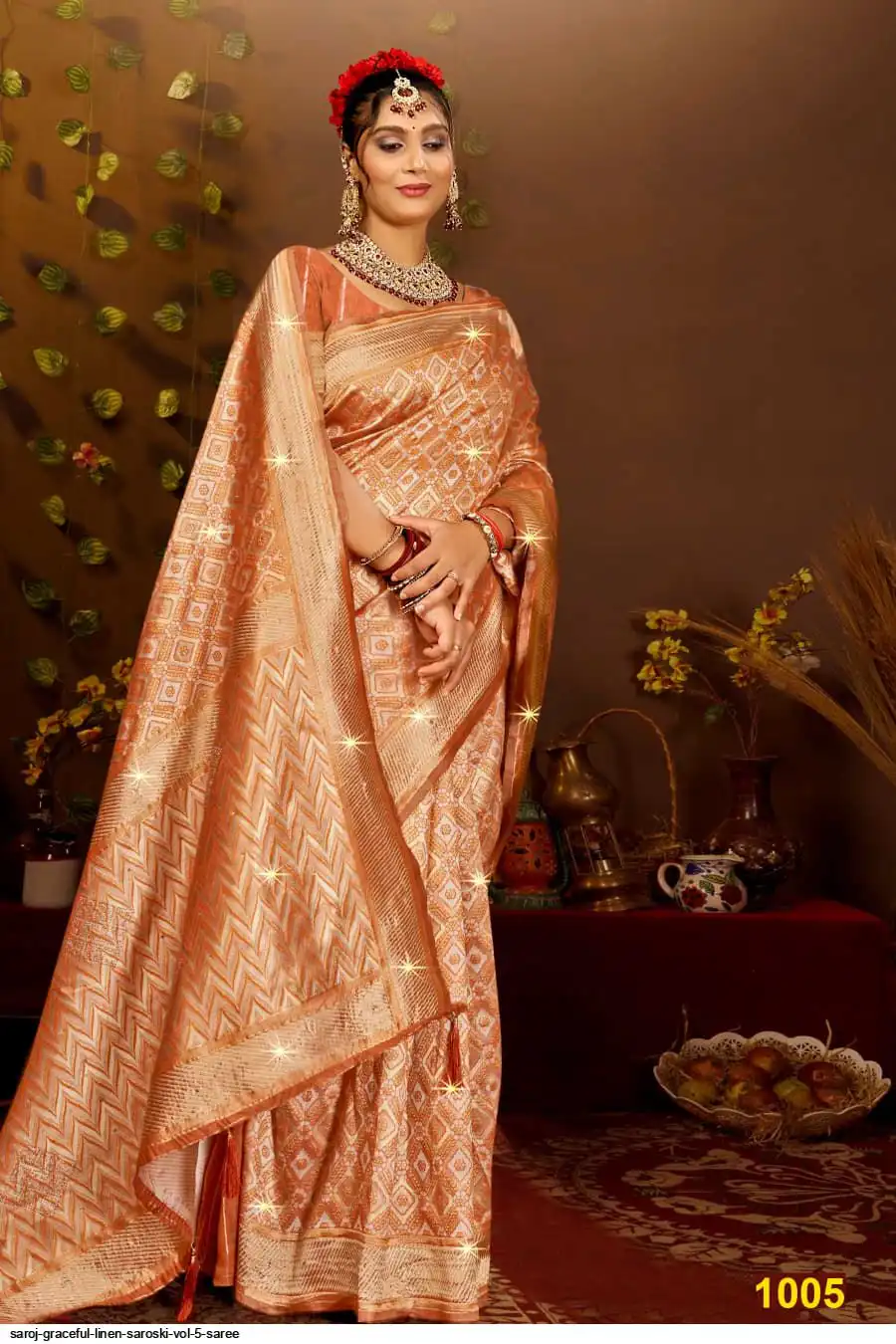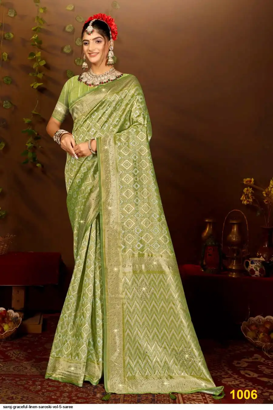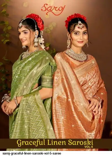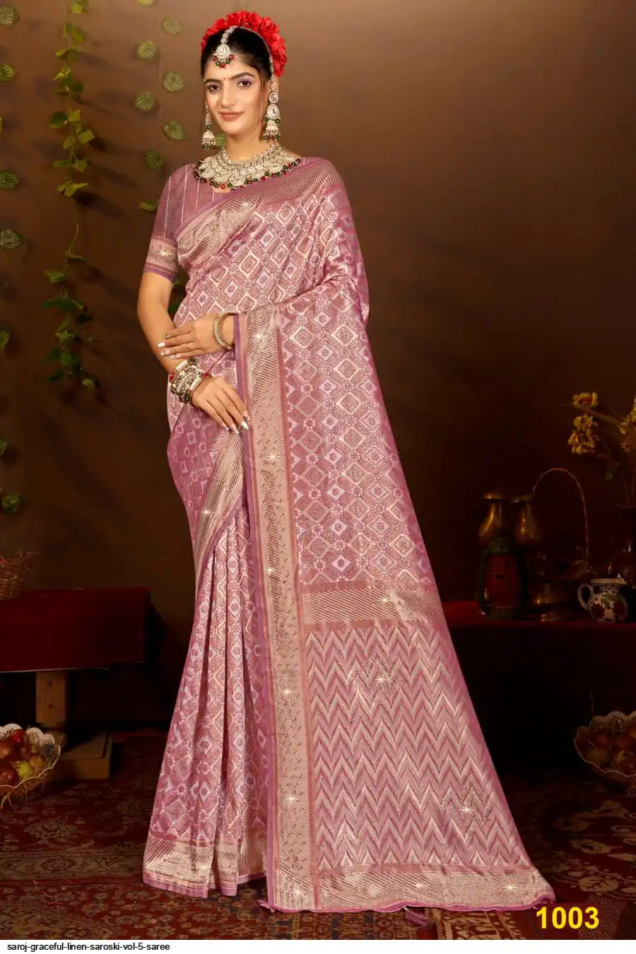 SAROJ GRACEFUL LINEN SAROSKI VOL 5 SAREE