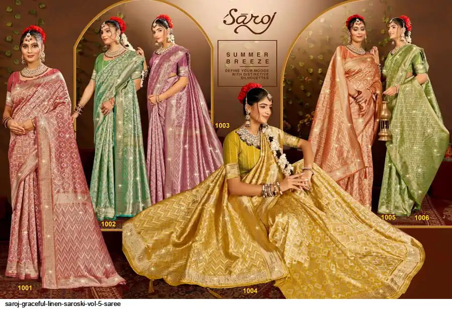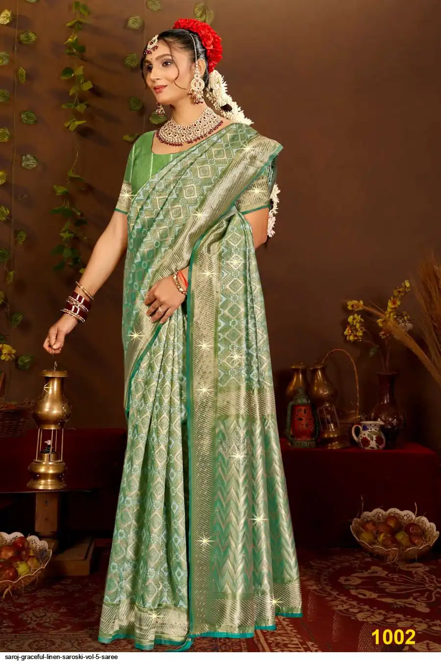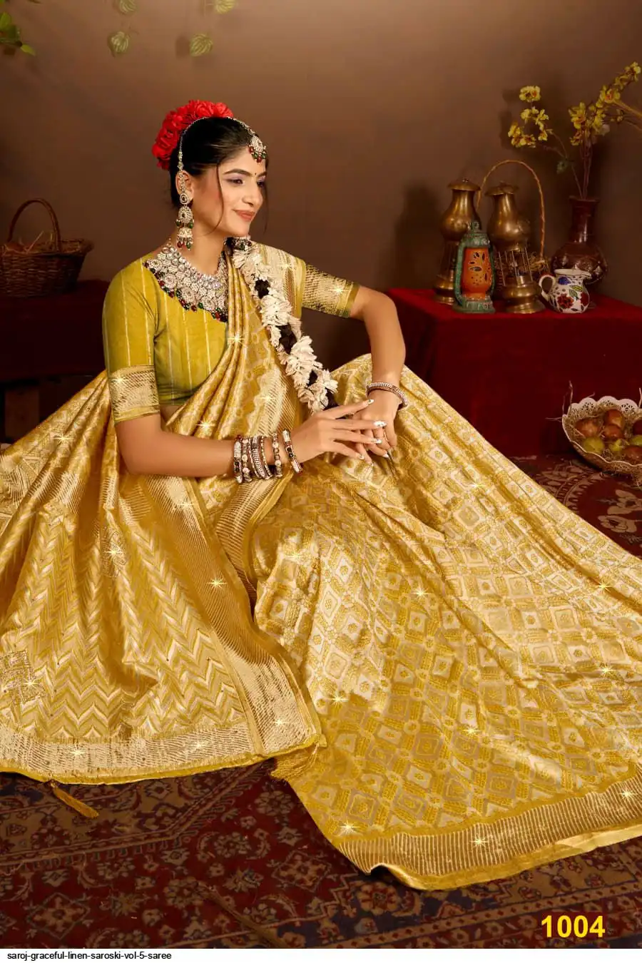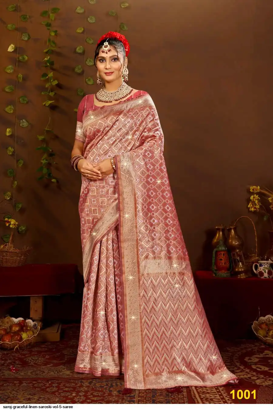 SAROJ GRACEFUL LINEN SAROSKI VOL 5 SAREE