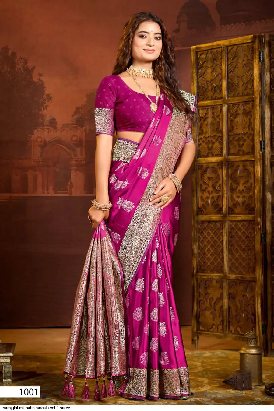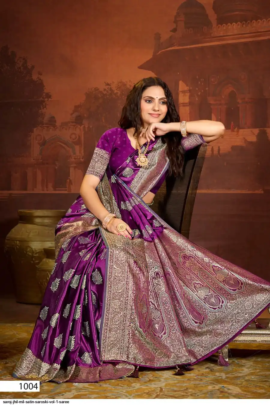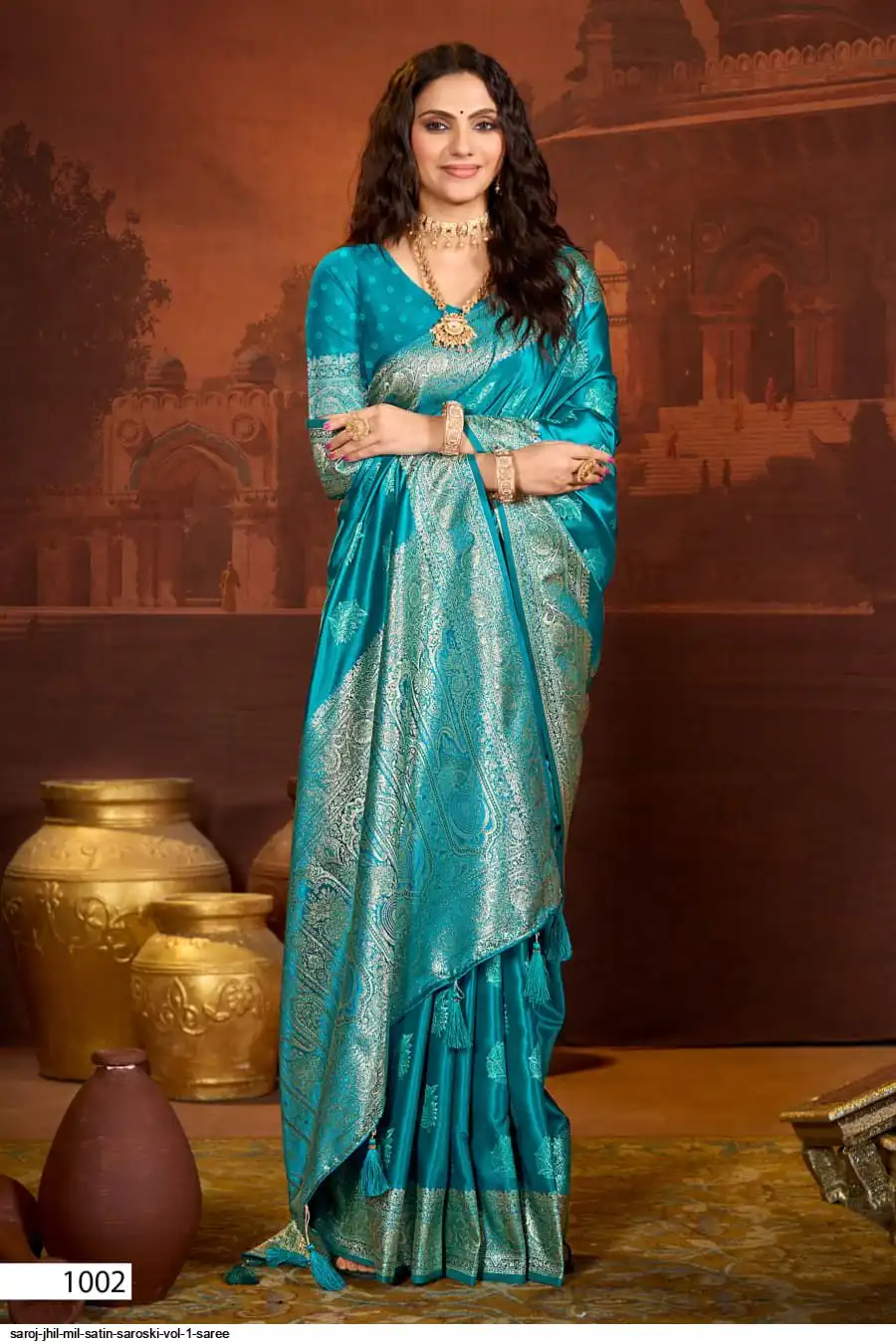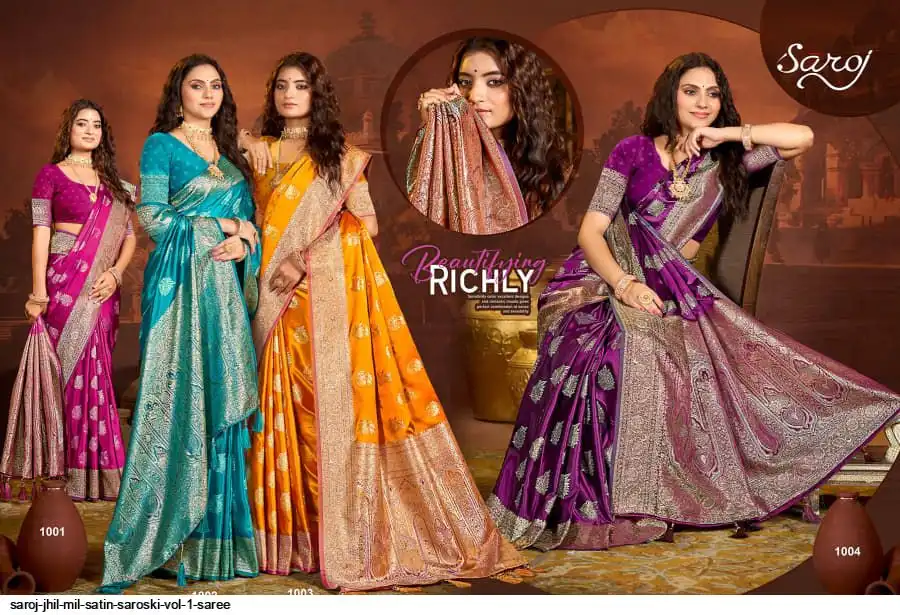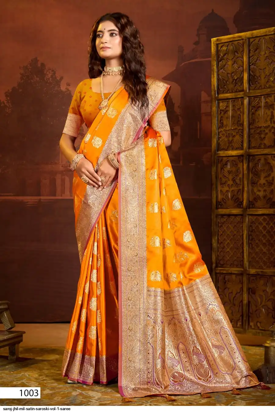 SAROJ JHIL MIL SATIN SAROSKI VOL 1 SAREE