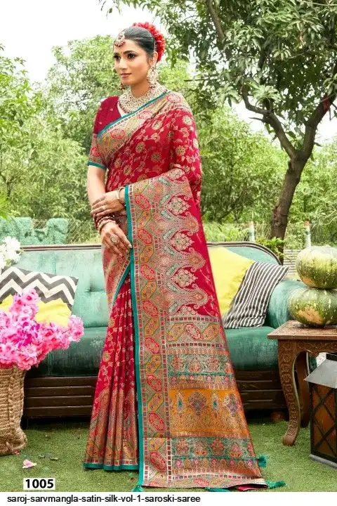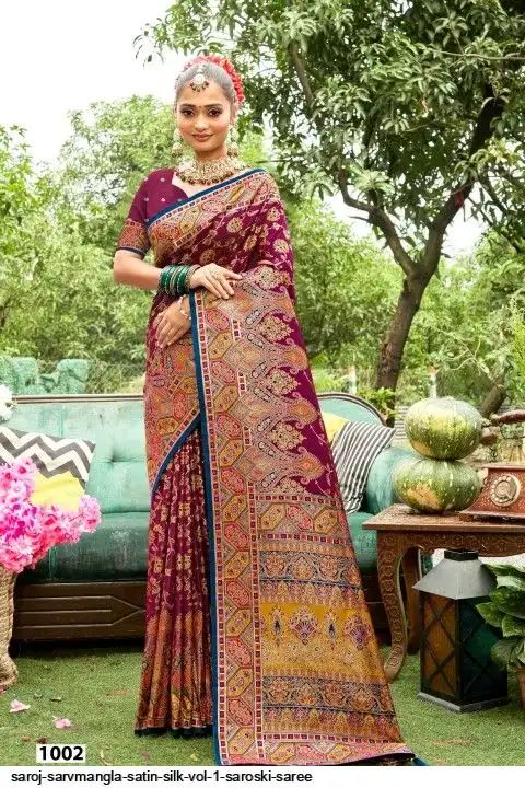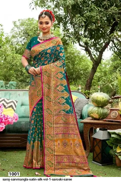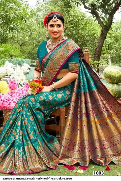 fabric : Satin silk meena design and saroski work