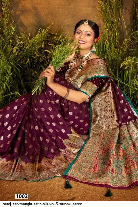 fabric : Saroj Sarvmangla satin silk vol 5 saroski saree