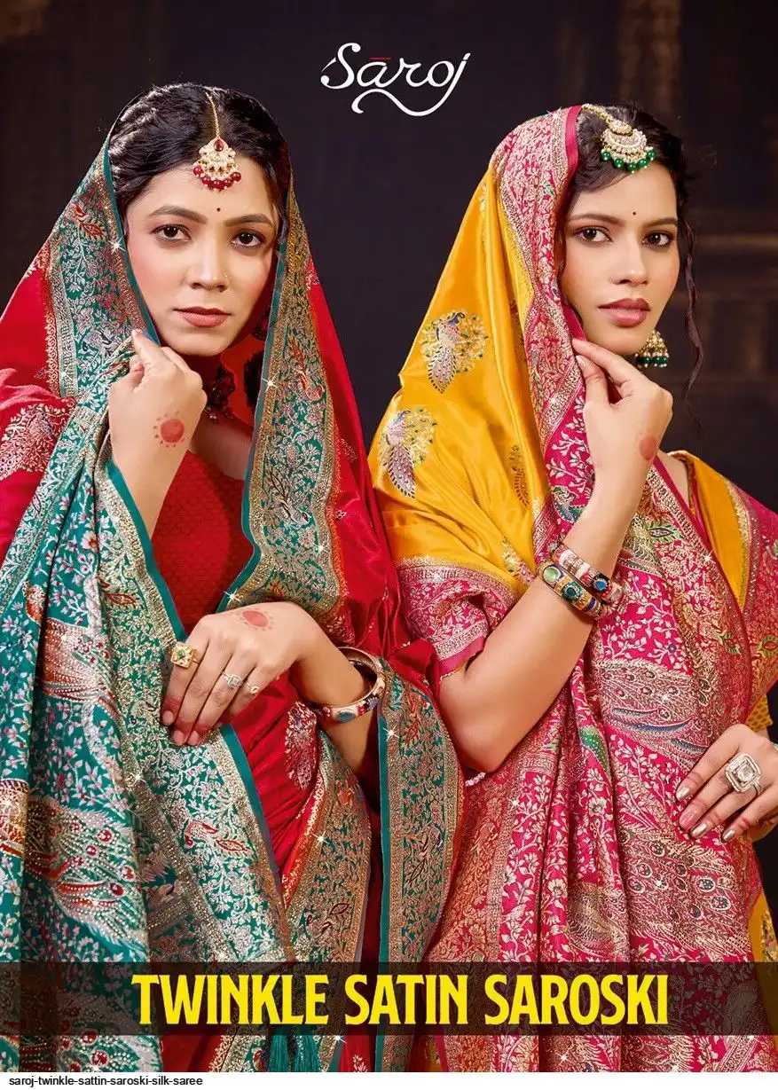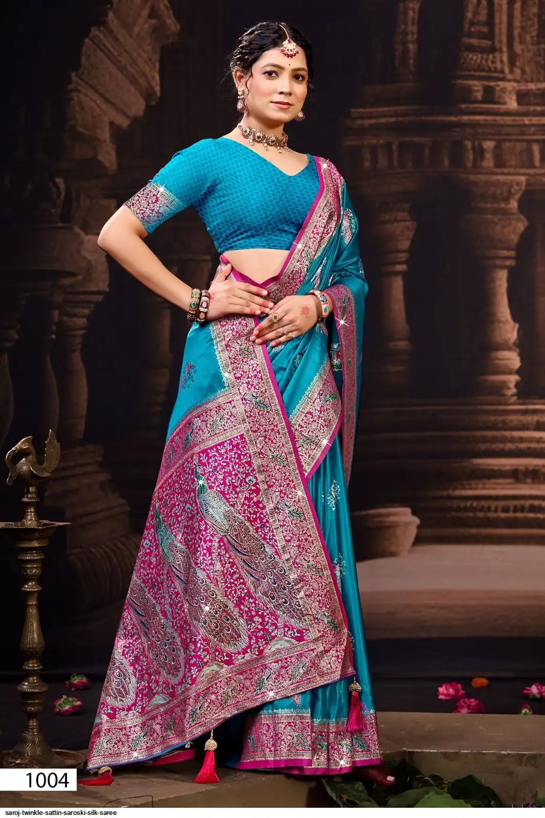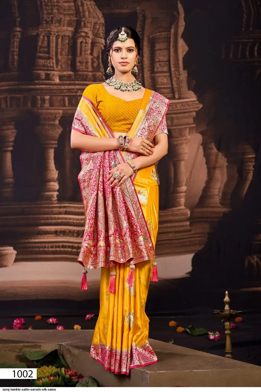 Pure Sattin Silk Rich Pallu Saree Contrast pallu matching