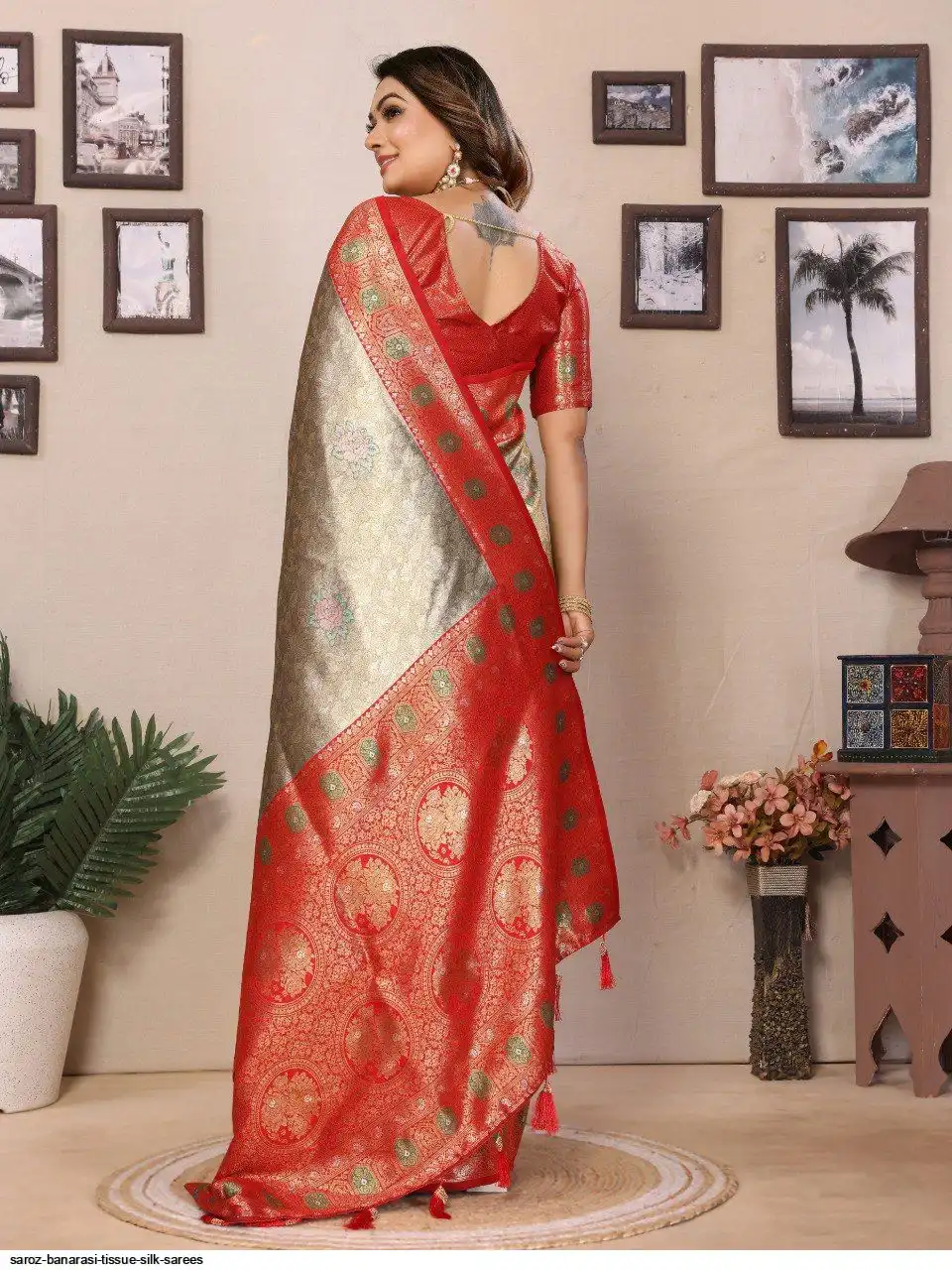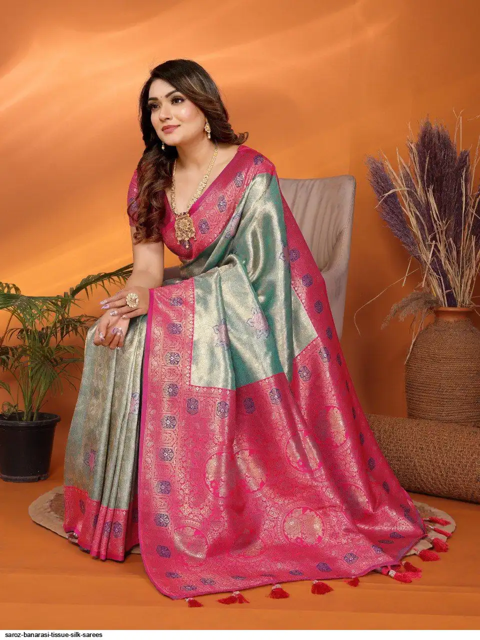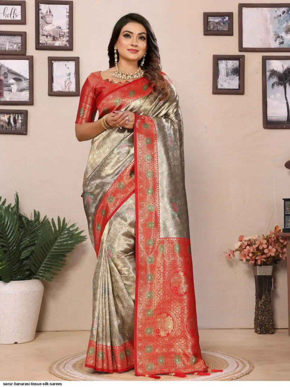 These superior and premium pure banarasi tissue silk sarees with all over weaving butties