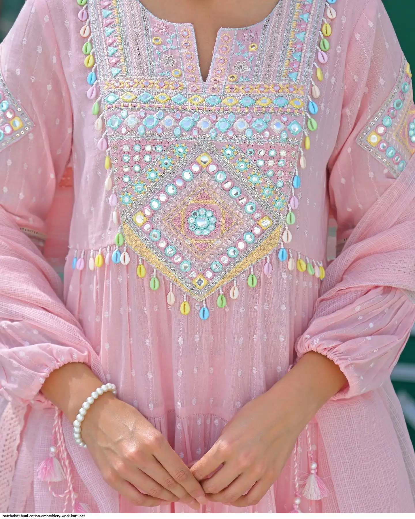 WORK:- EMBROIDERY WORK WITH HAND KODI LACE