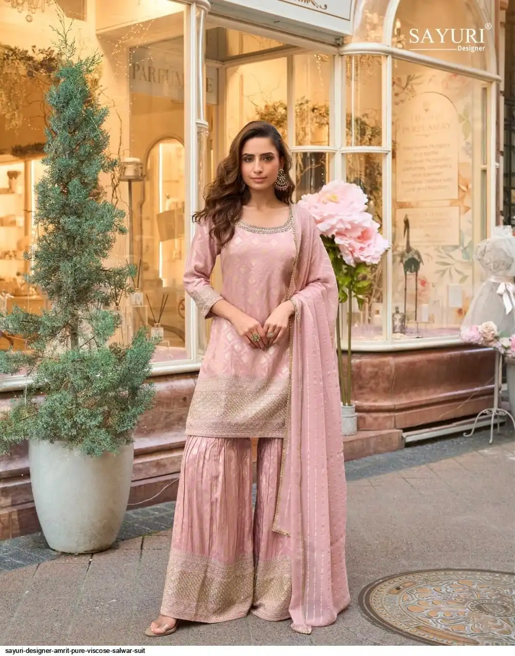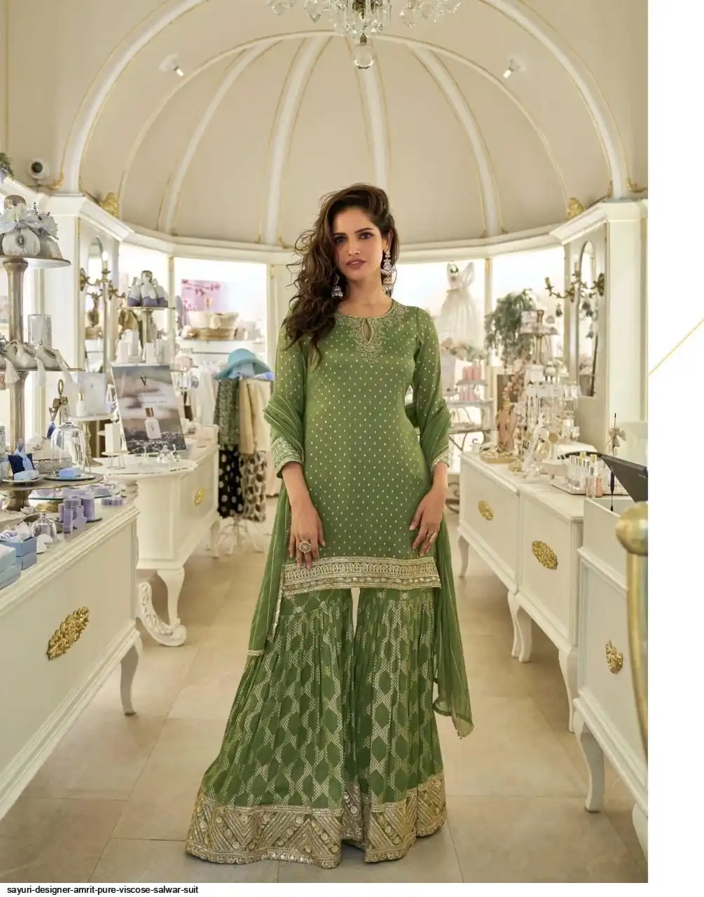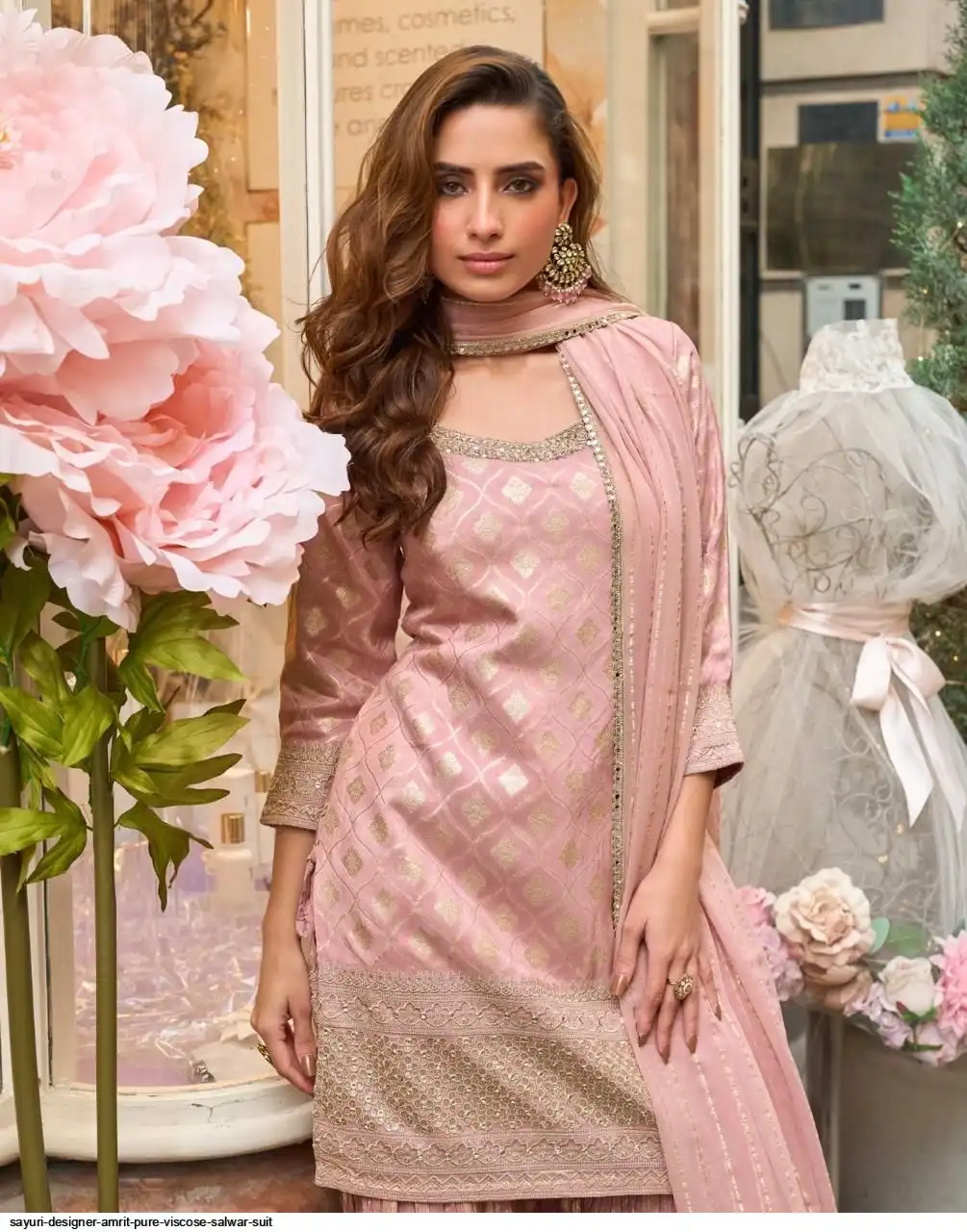 FABRIC - PURE VISCOS SIMAR JACQUARD SILK ( FULL HEAVY LOOK VISCOS SIMAR EMBROIDERED TOP WITH EMBROIDERED PLAZZO\GHARARA AND EMBROIDERED DUPATTA )