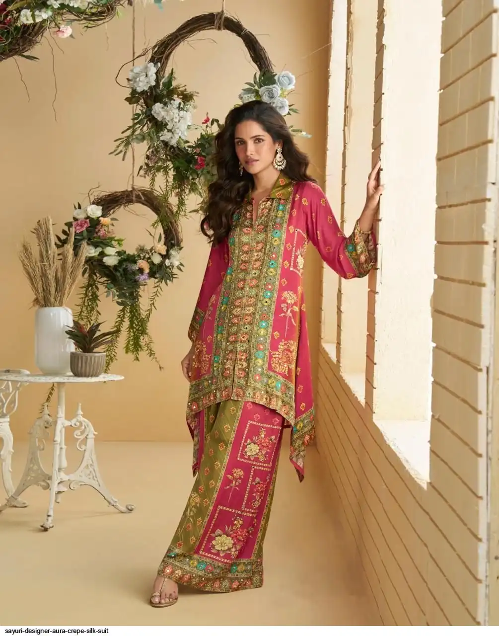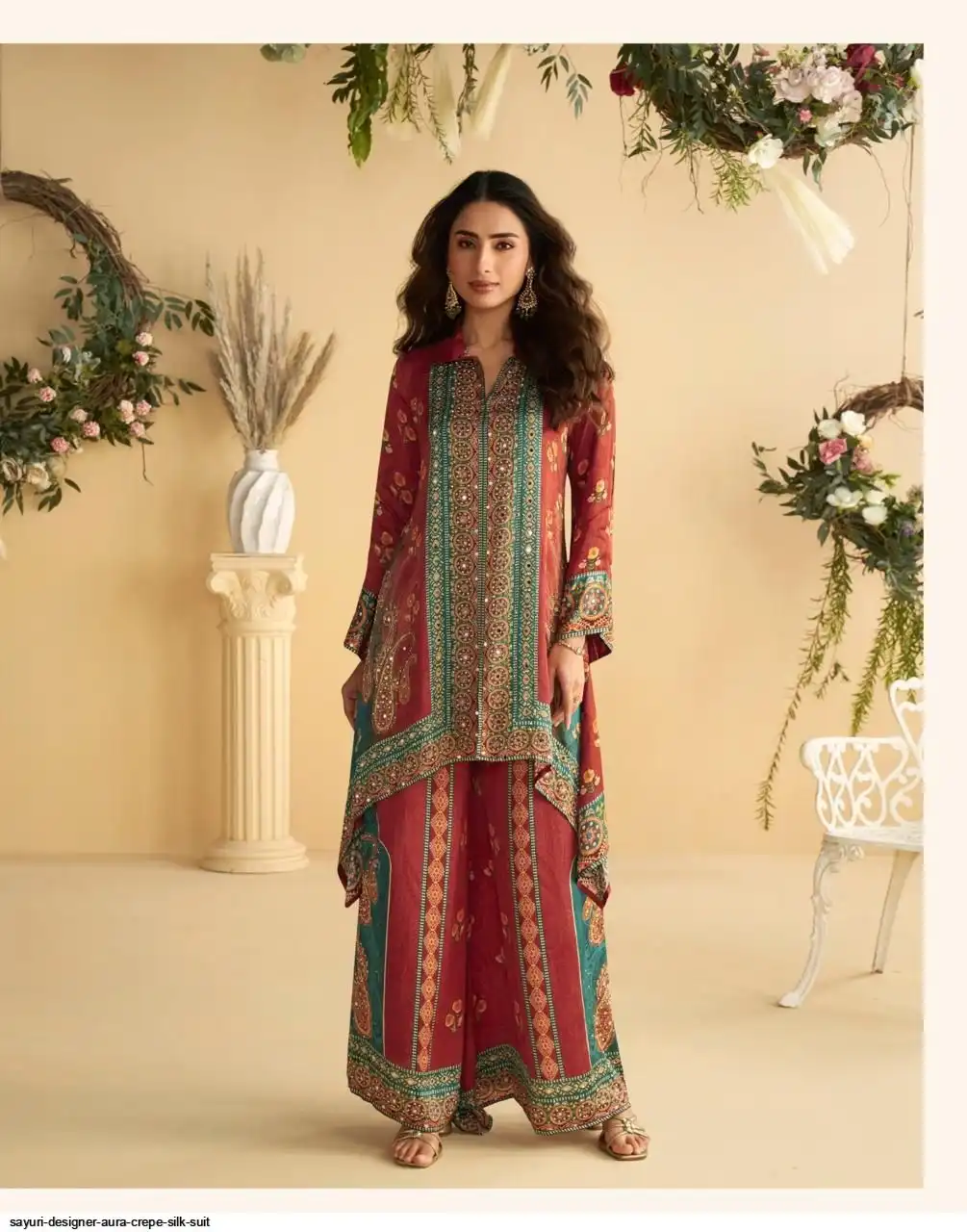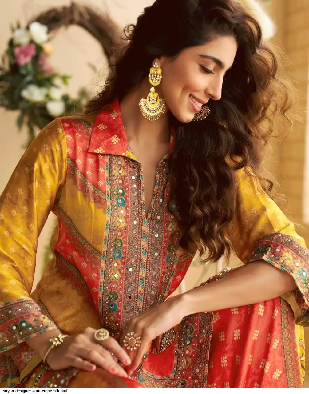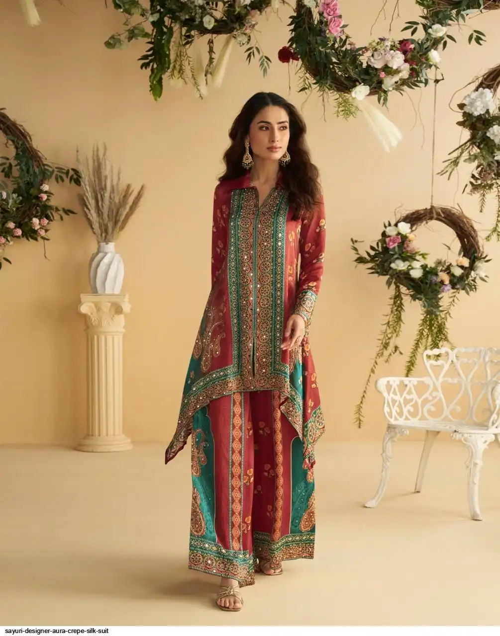 FABRIC - REAL PREMIUM ( DIGITAL CREP SILK EMBLISSIED MIRROR WORK CORD SETS )