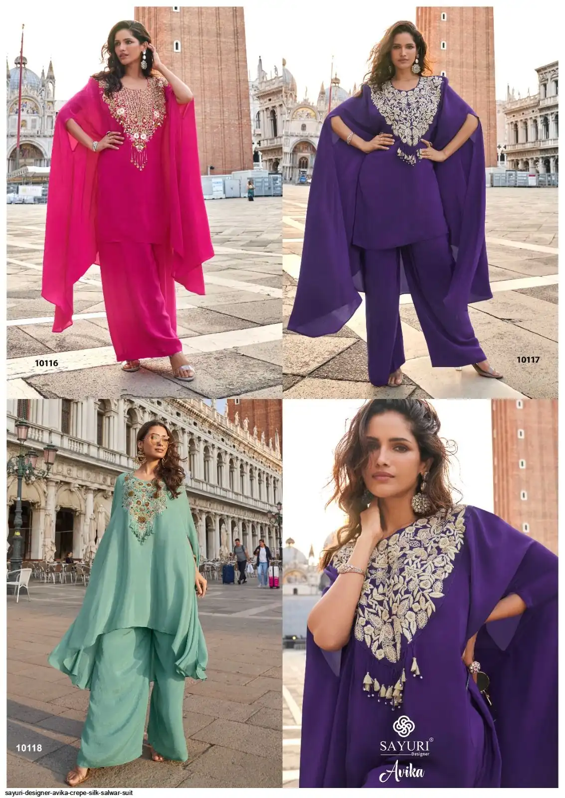PREMIUM FRENCH CREPE SILK / REAL CHINON SILK ( STYLIST LOOK LONG CUT STYLE HAND EMBROIDERED TOP WITH PLAZZO )