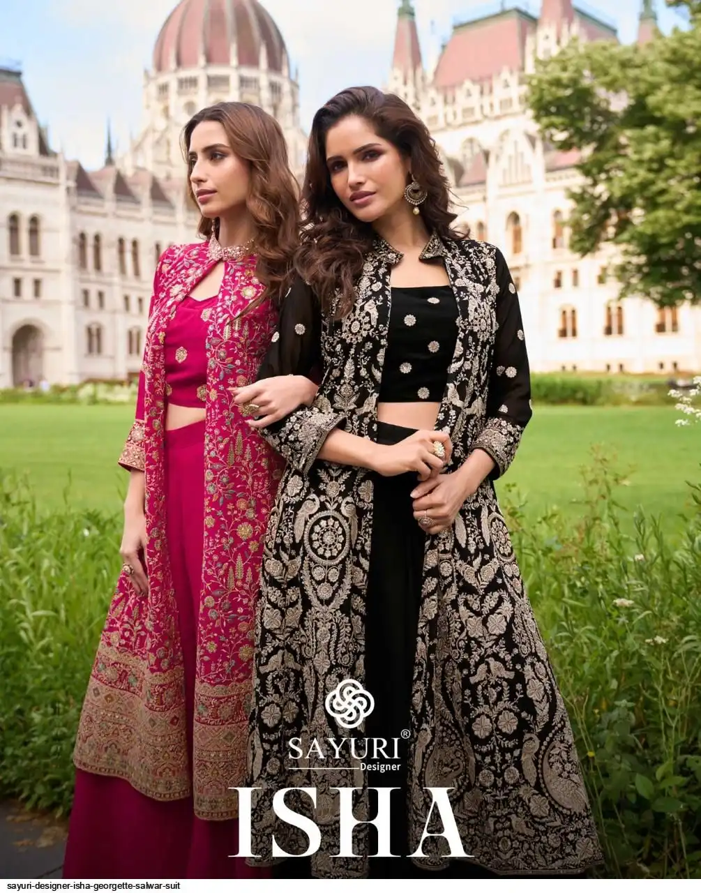 FABRIC - REAL PREMIUM GEORGETTE ( HEAVY EMBROIDERED BEADS WORK FRONT AND BACK SHRUG WITH EMBROIDERED BLOUSE AND PLAZZO )