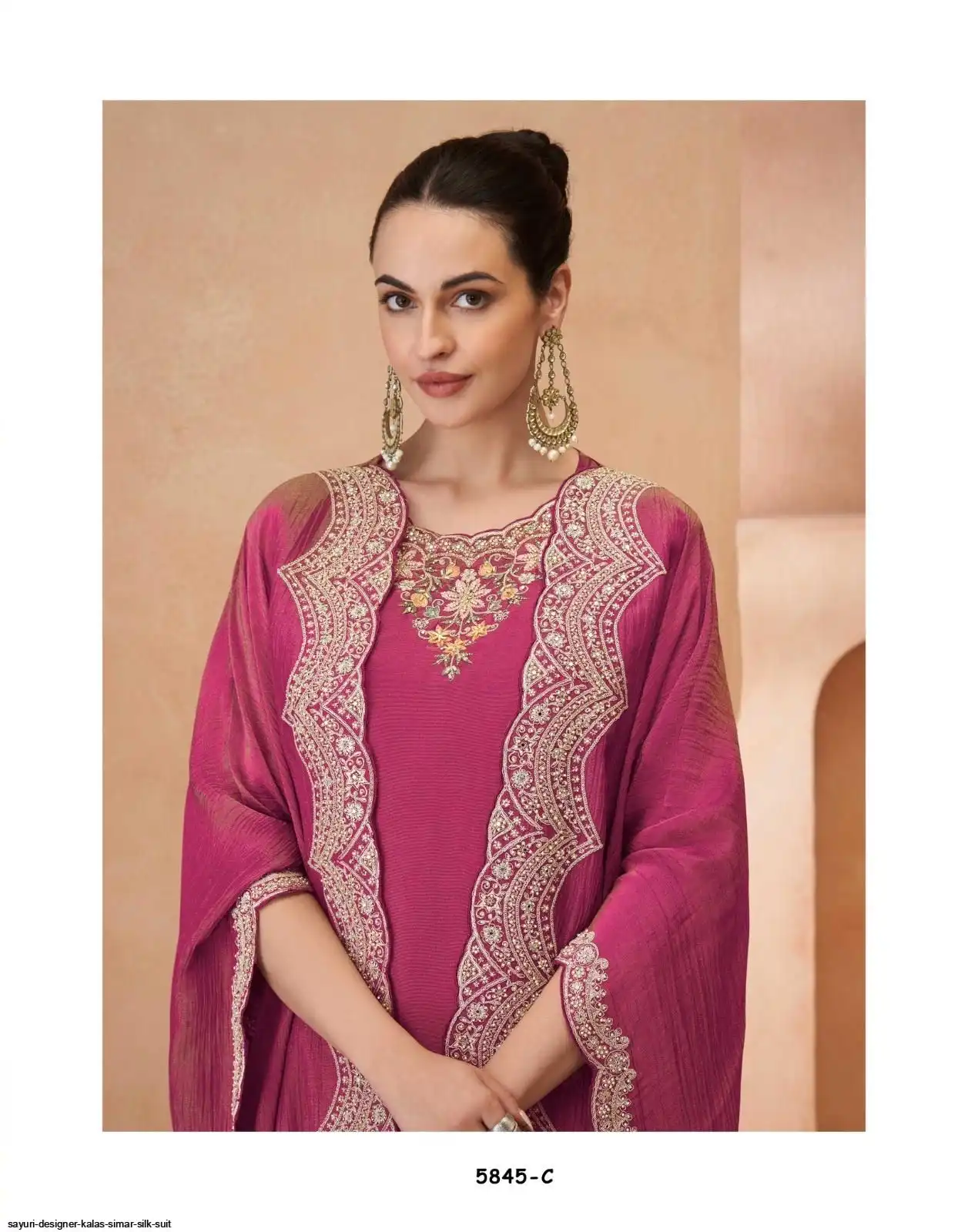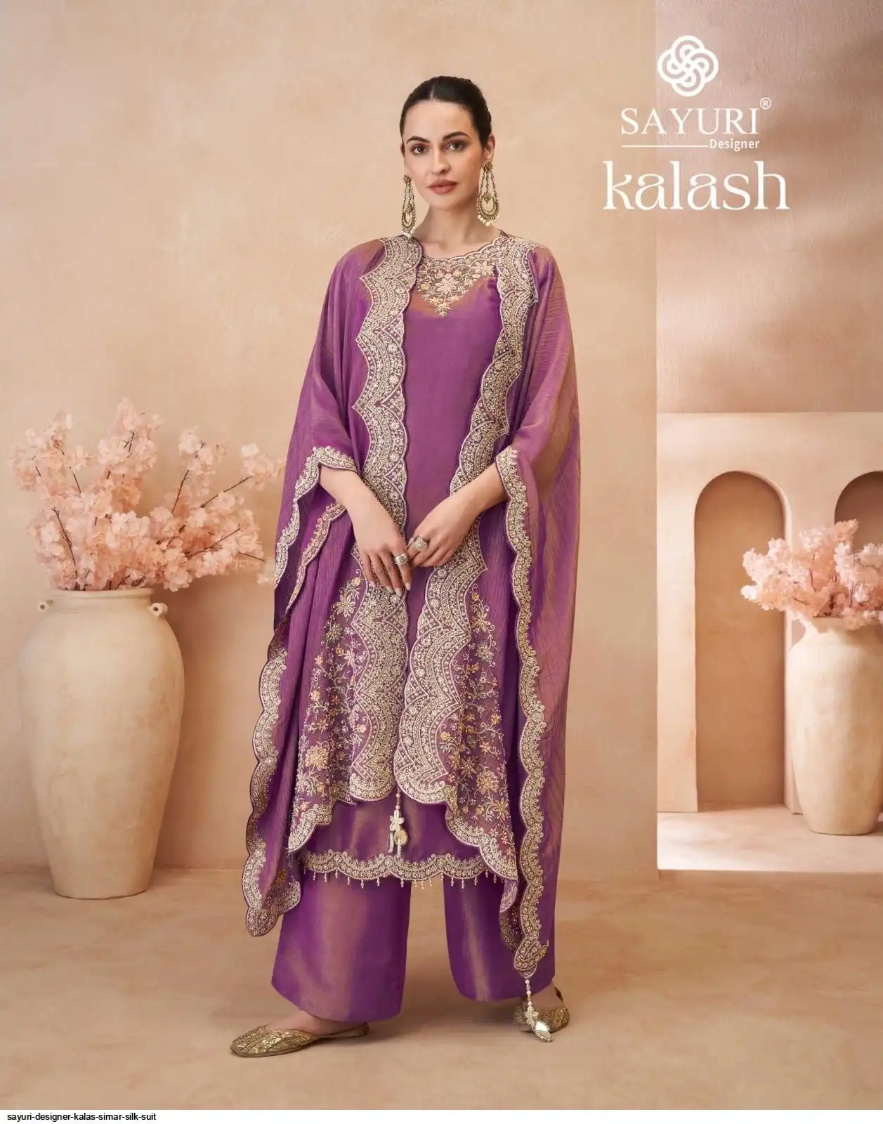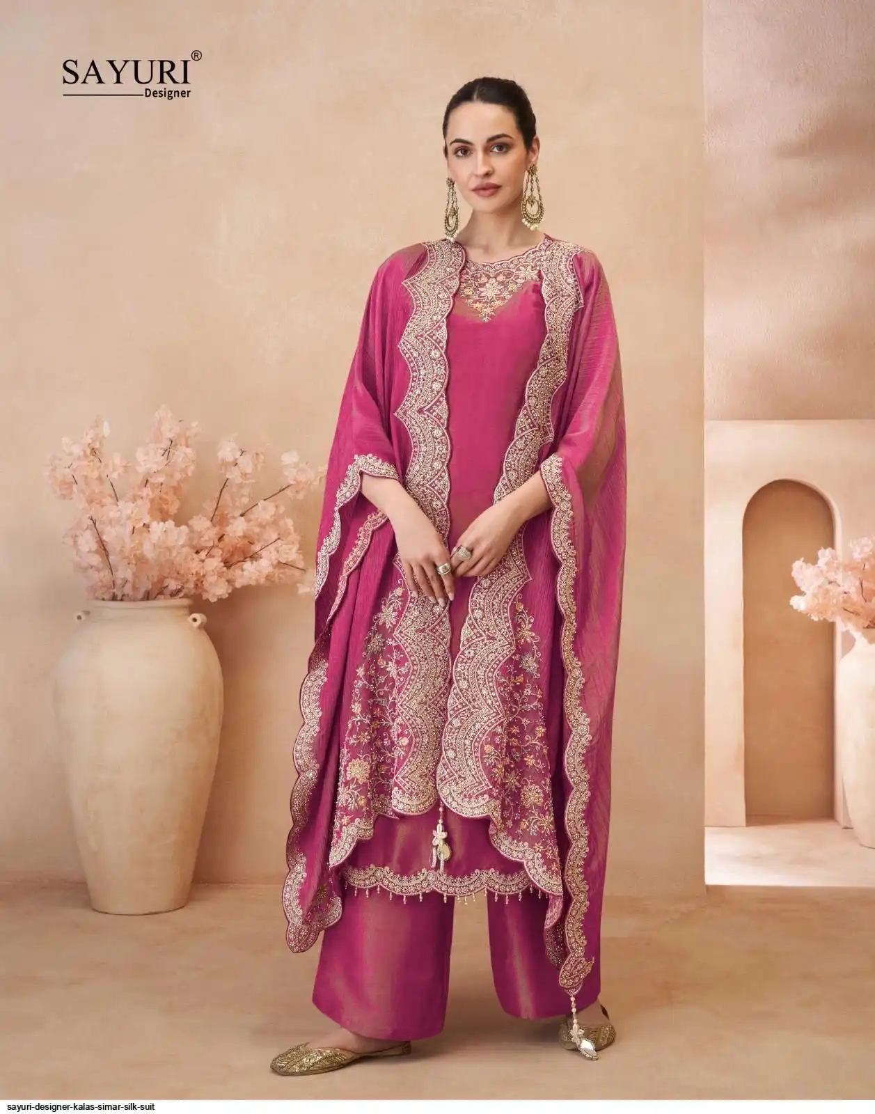 FABRIC - PREMIUM REAL SIMAR SILK ( FESTIVE LOOK EMBROIDERED SIMAR SILK TOP WITH EMBROIDERED JACKET STYLE DUPATTA AND PLAZZO