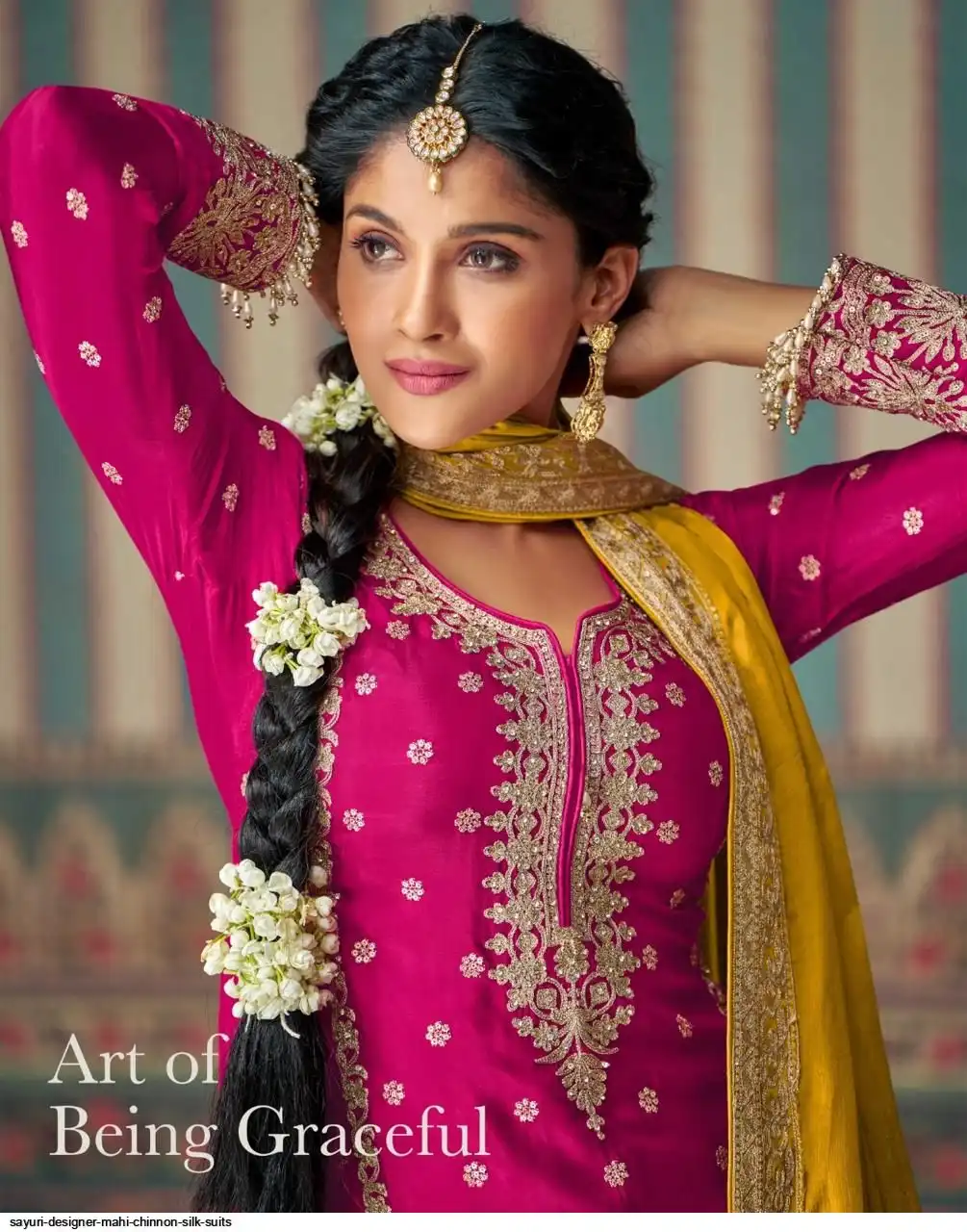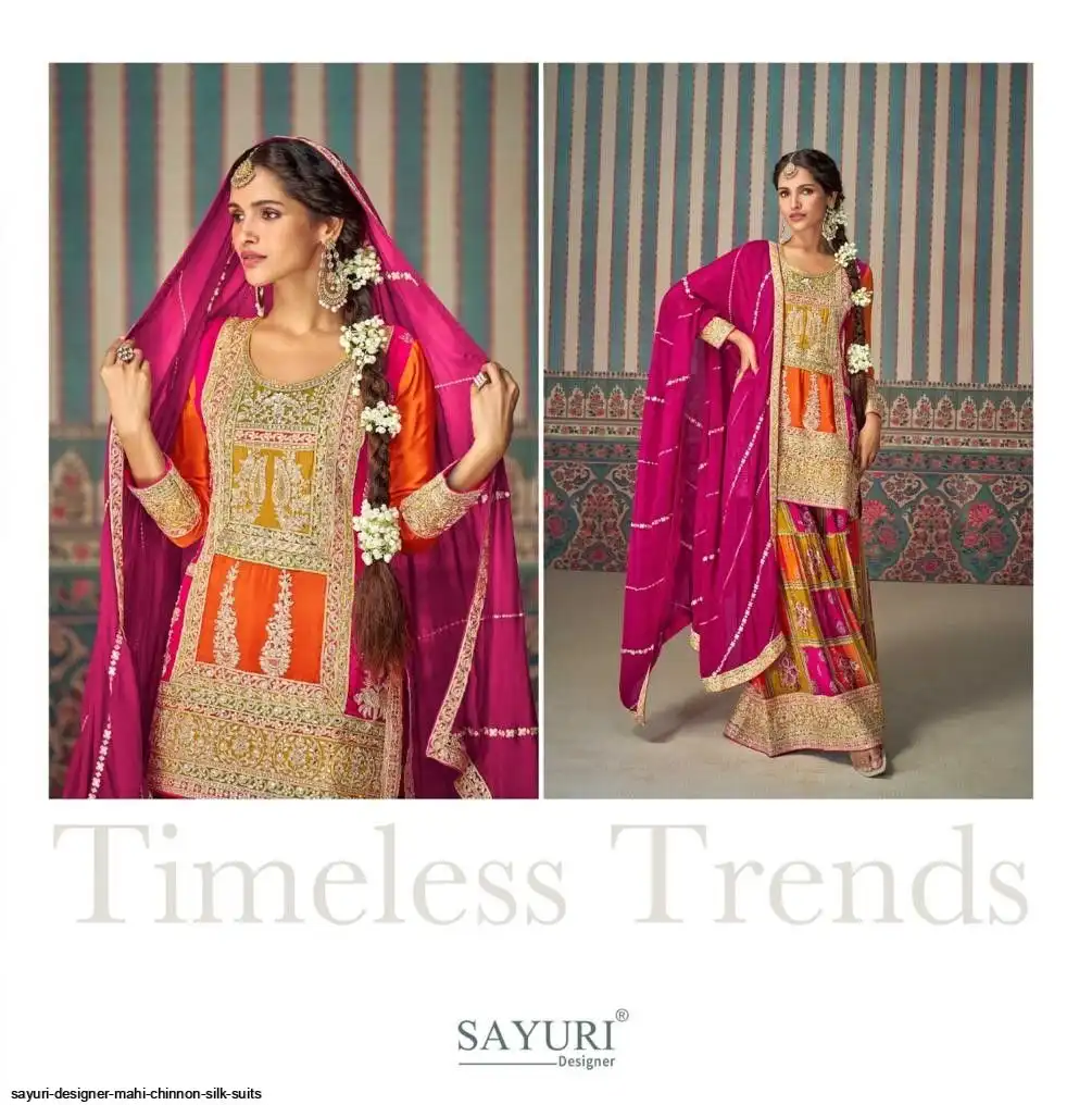 FABRIC - PREMIUM REAL CHINON SILK ( FULL HEAVY LOOK EMBROIDERED WORK WITH ALL OVER HAND EMBELLISHED MIRROR WORK )