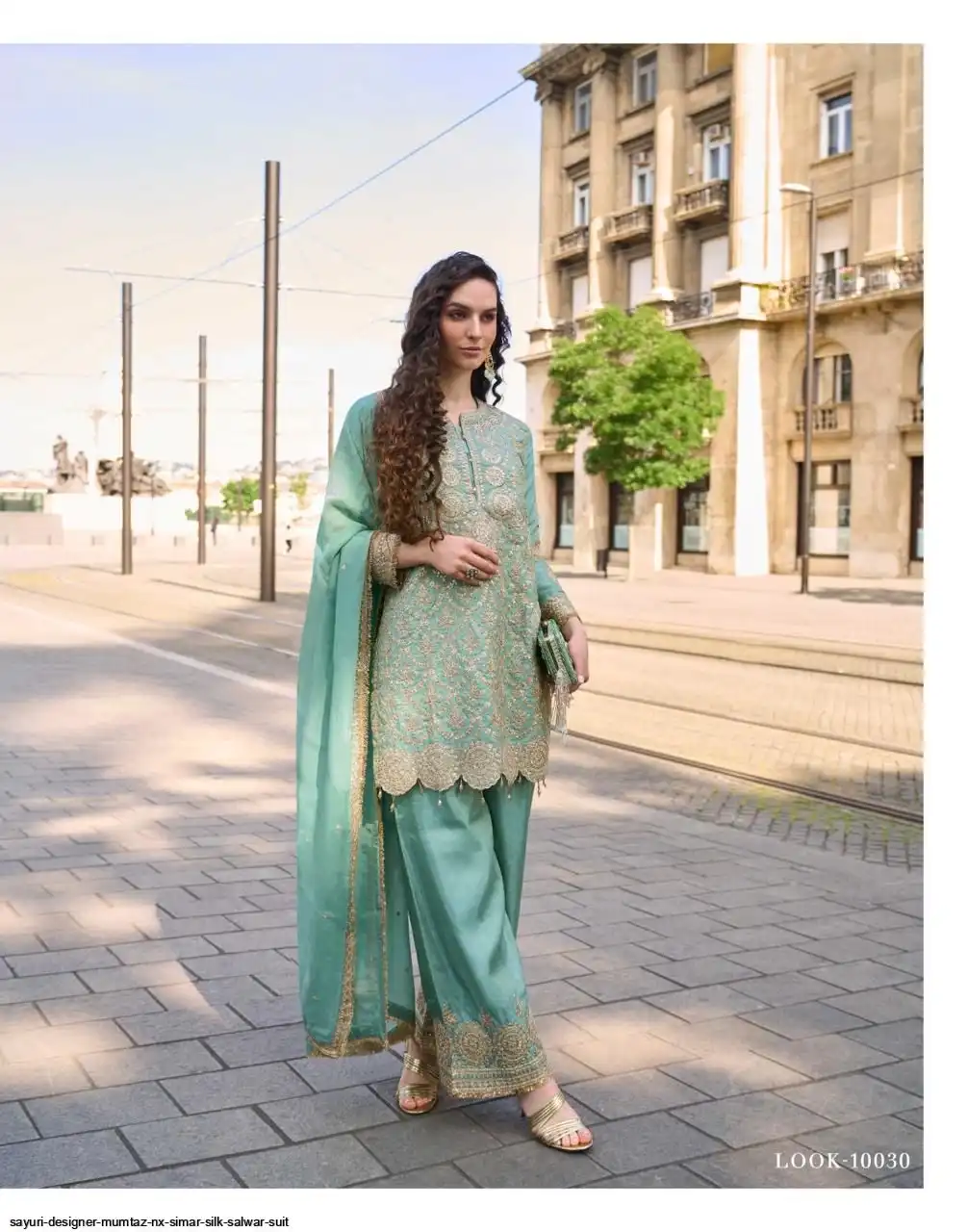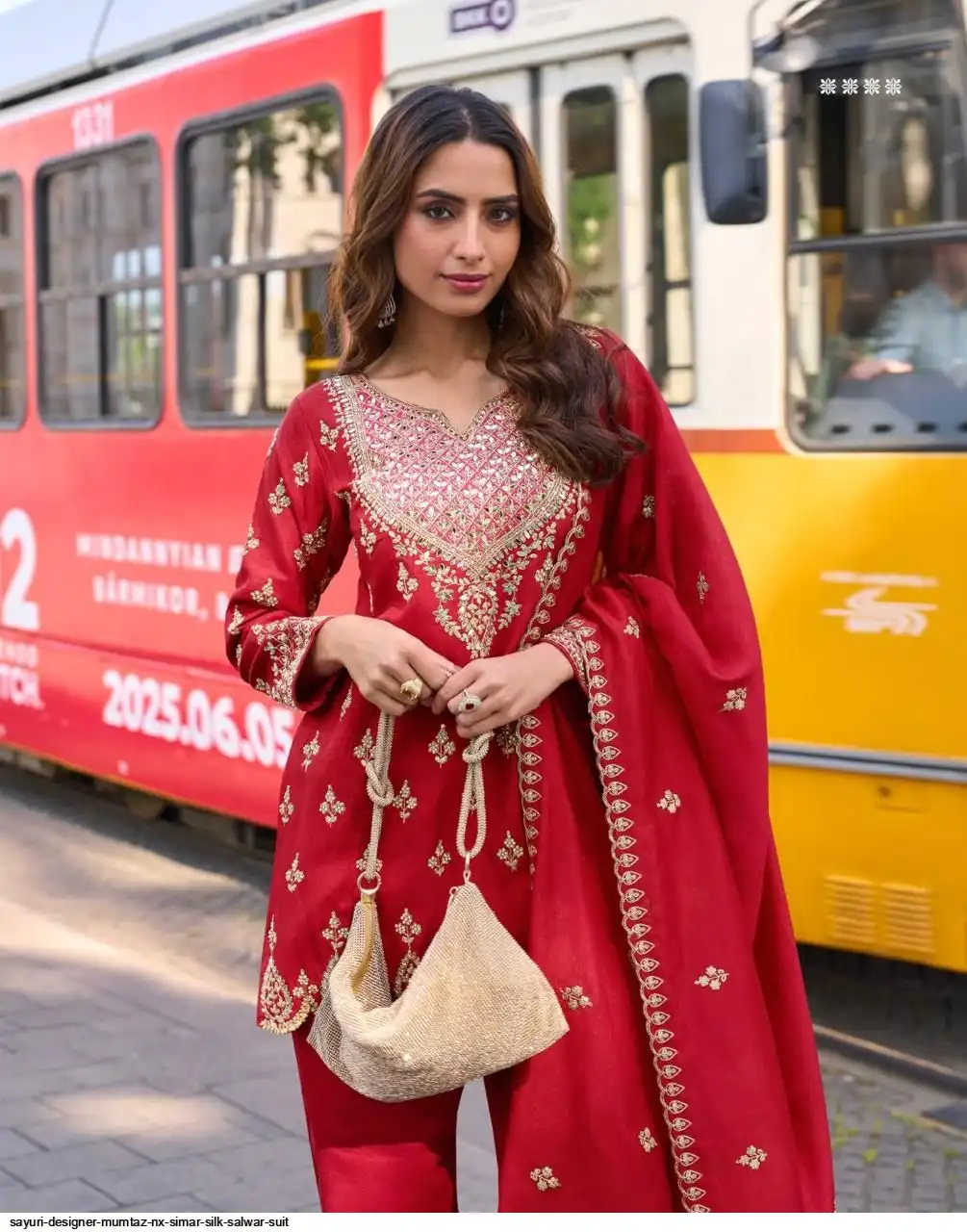 FABRIC - PREMIUM SIMAR SILK / REAL PREMIUM SILK ( HEAVY EMBROIDERED SIMAR SILK TOP WITH HAND EMBLISSIED MIRROR WORK WITH EMBROIDERED PLAZZO PANT AND EMBROIDERED SILK/ORGANZA DUPATTA )