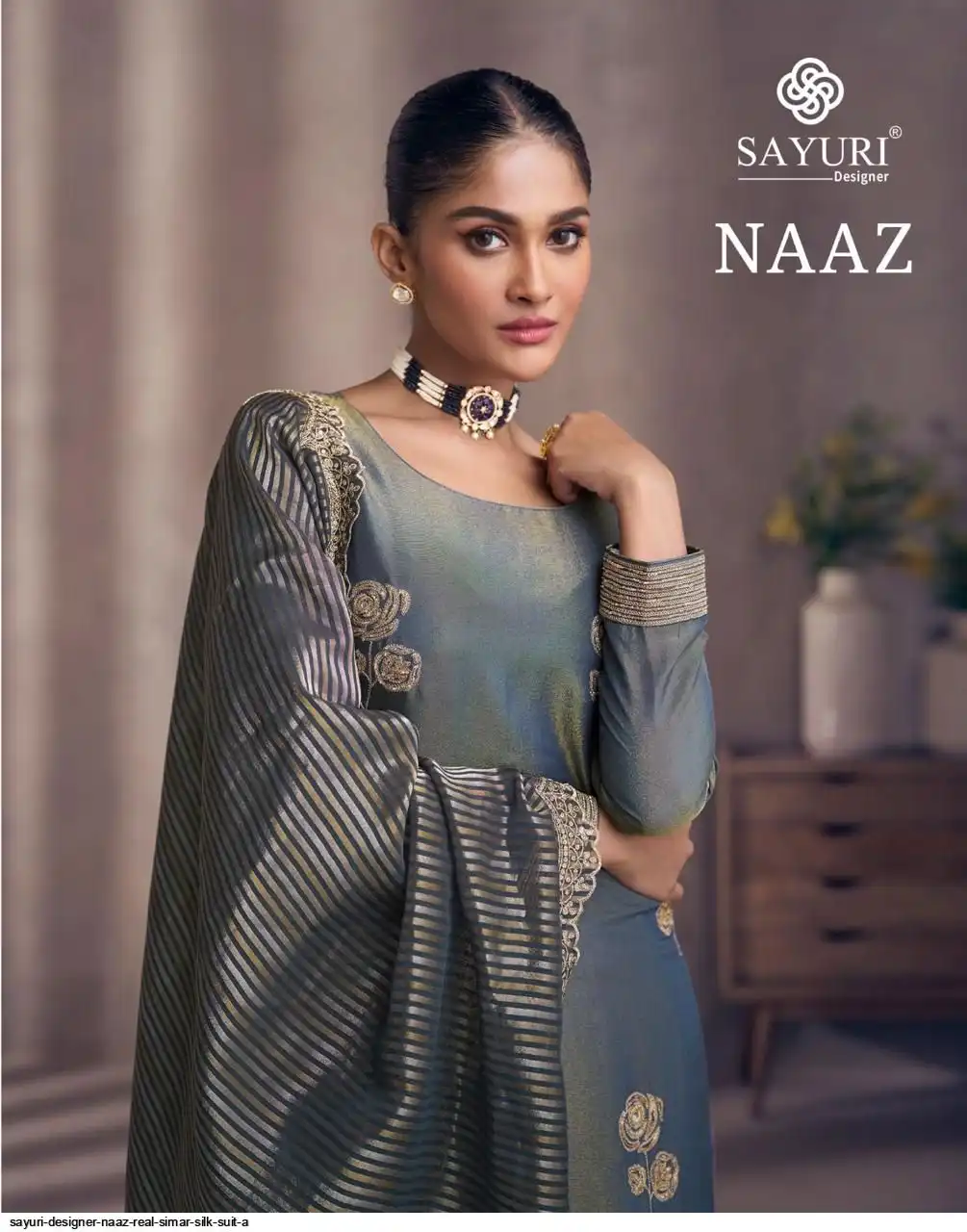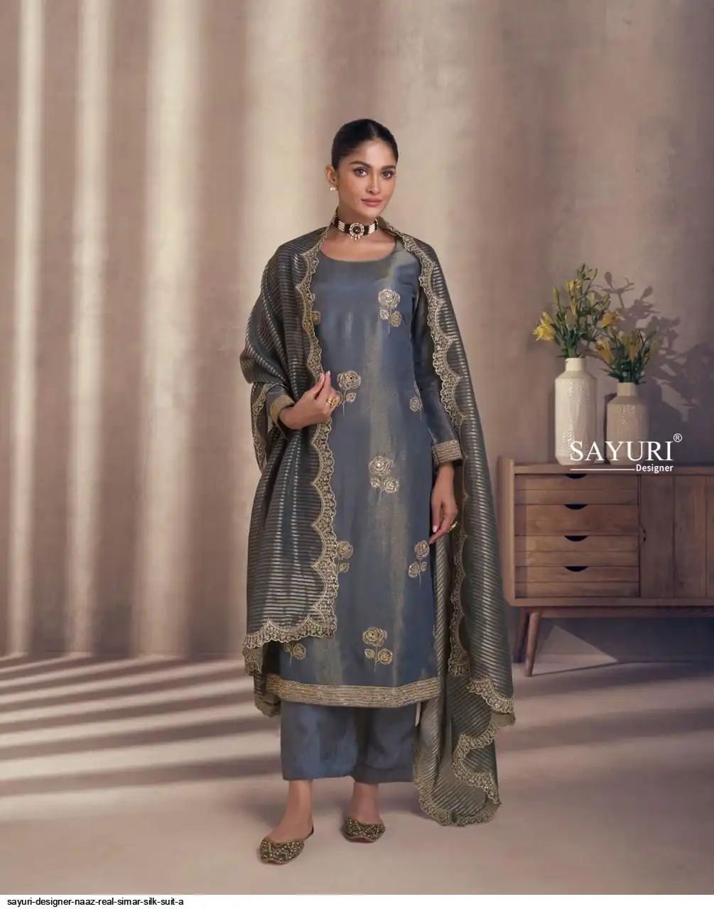 FABRIC - PREMIUM REAL SIMAR SILK ( EMBROIDERED SIMAR SILK TOP WITH DIGITAL CHINON SILK DUPATTA WITH PANT )